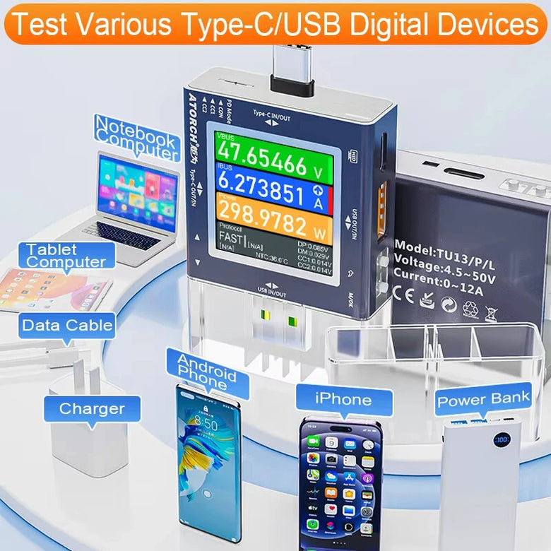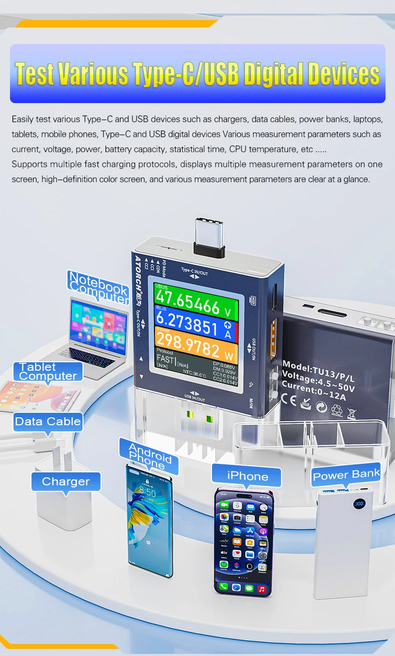 3. Enhanced Charging Safety: Instant peak current measurement up to 12A provides precise analysis of charging stability and protects devices from potential overloads.