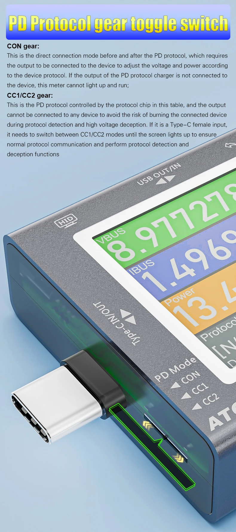 2. Precision Monitoring: Equipped with IPS high-definition full-view color screen for clear and accurate readings of voltage, current, and power in real-time.