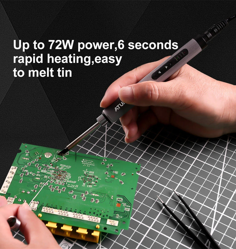 • AtuMan EI2 Portable Soldering Iron 72W 9-24V DC 5525 Fast Heating LED Indicator Temperature Control 300-400C Lightweight 40g