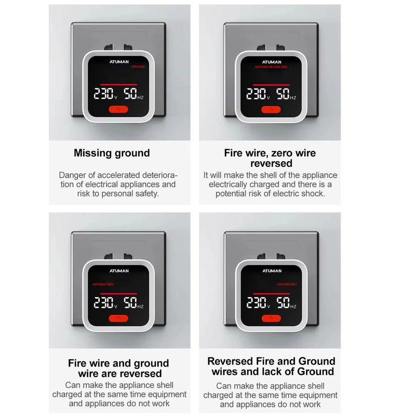 • ATuMan ST2 Socket Tester Smart Plug Analyzer LCD Display Voltage Tester GFCI Test Electrical Wiring Checker 90-250V Universal Socket Tester