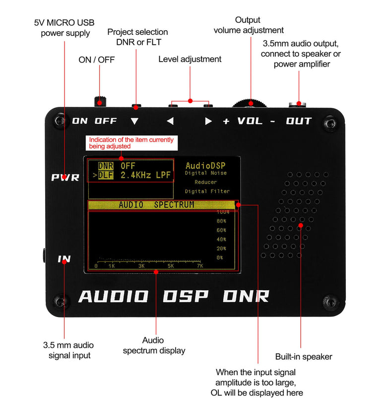 The DSP noise reducer is for shortwave radio station. With DSP, it can process the audio signal and realize digital noise reduction and digital filtering. Therefore, it is suitable for radio receivers to use it to input audio signals.