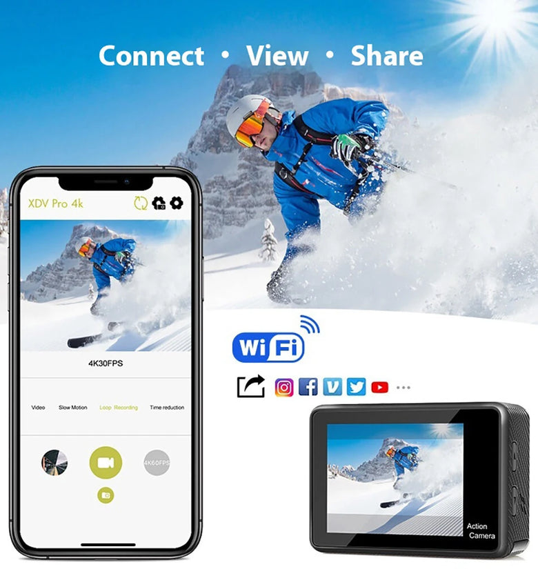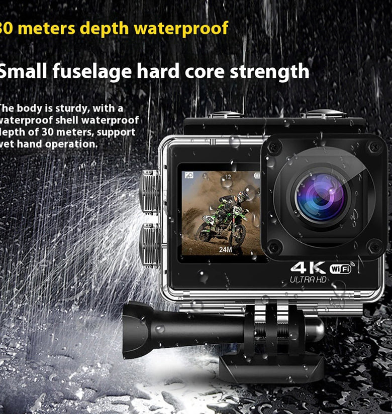 - 30m Waterproof Rating: Dive deep with confidence. The camera is housed in a robust waterproof casing that allows for submersion up to 30 meters. Whether you're swimming, snorkeling, or diving, this action camera is designed to withstand water pressures and deliver exceptional underwater footage.