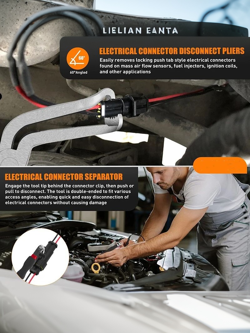 1.Specifically Designed for Automotive Electrical Connectors: Our 8-inch Electrical Disconnect Pliers are designed for easy removal of locking push-tab connectors on sensors, fuel injectors, ignition coils, and more. With a 60-degree and straight-angle design, these automotive electrical connector pliers offer one-handed control, making them perfect for tight spaces and compatible with all vehicles, including cars, trucks, and SUVs.