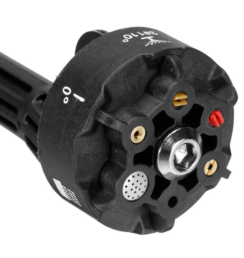 --6-in-1 high-pressure multi-angle nozzle, available in 6 patterns: 0degrees,15degrees, 25degrees, 40degrees, Shower Mode,High Pressure Direct Injection.