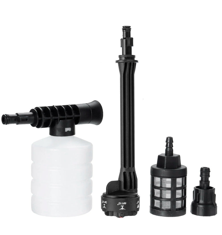 --Portable and self-starting, faster and stronger, built-in stainless steel fine filter, highly effective and deep filtering of impurities in the water. -Equipped with foam bottles, it is more convenient to wash the car.