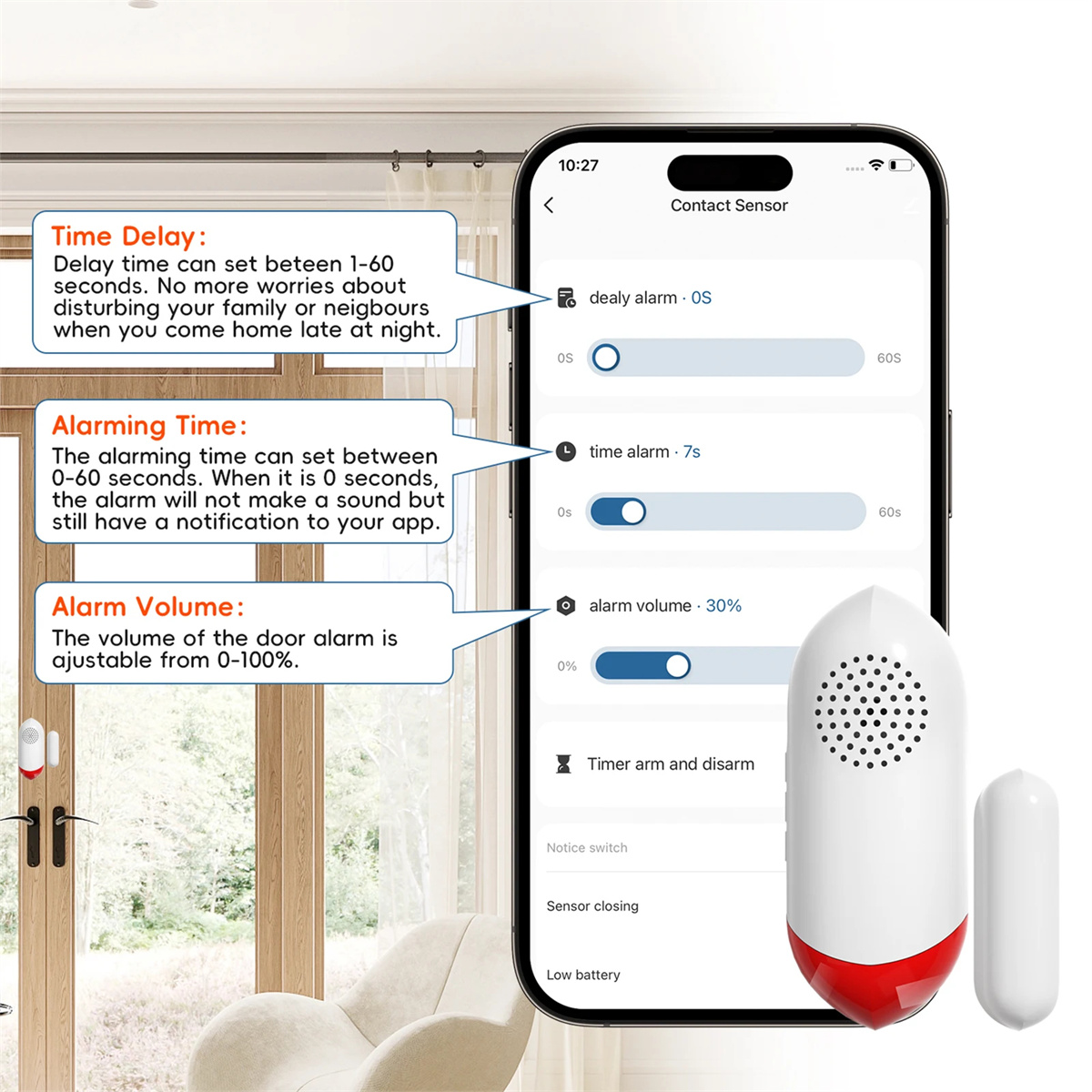AW401S Tuya WiFi Door Window Sensor Alarm Home Security Wireless Magnetic Sensor Anti-Theft Alarm Sound and Light Smart Voice Tuya APP Control