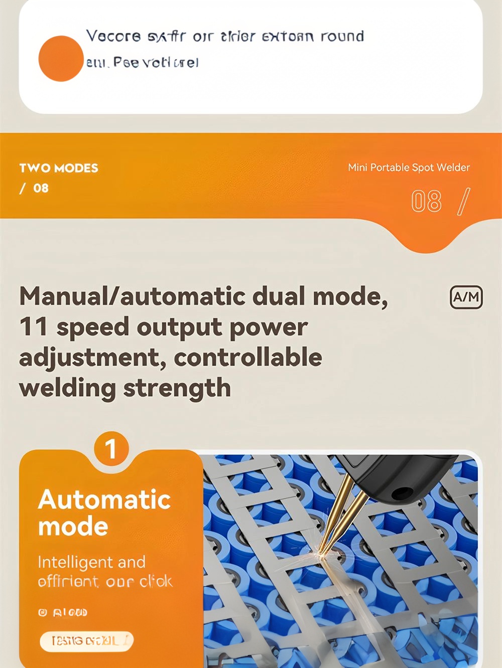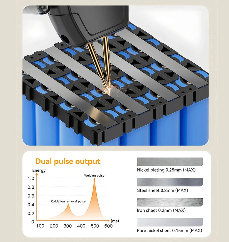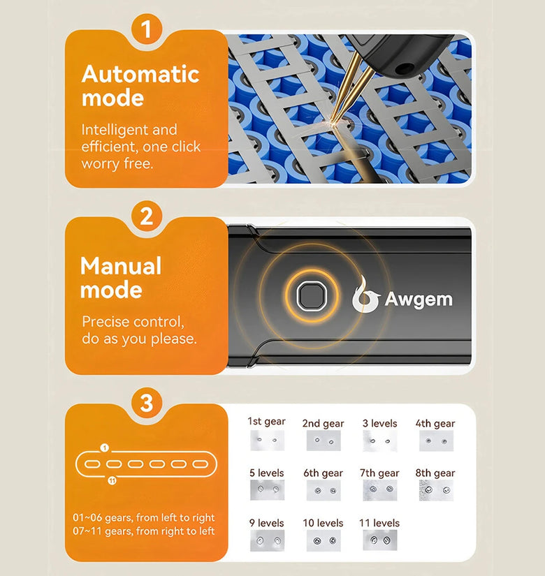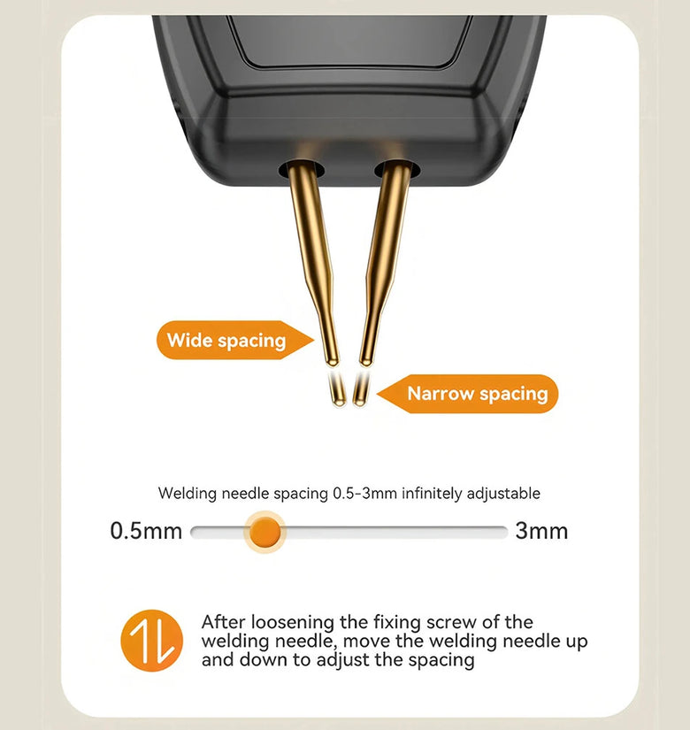 3.Power Adjustment Options: Features 11 adjustable output power levels to meet your spot welding requirements for different materials, ensuring flexibility and precision.