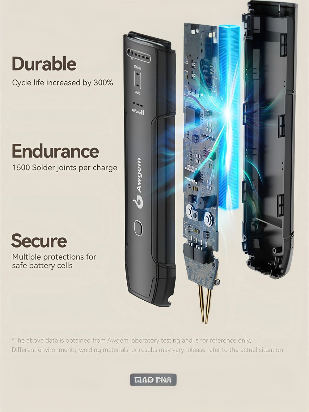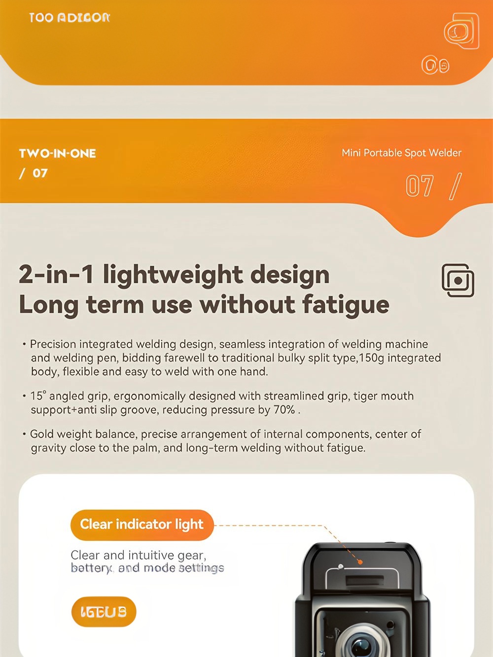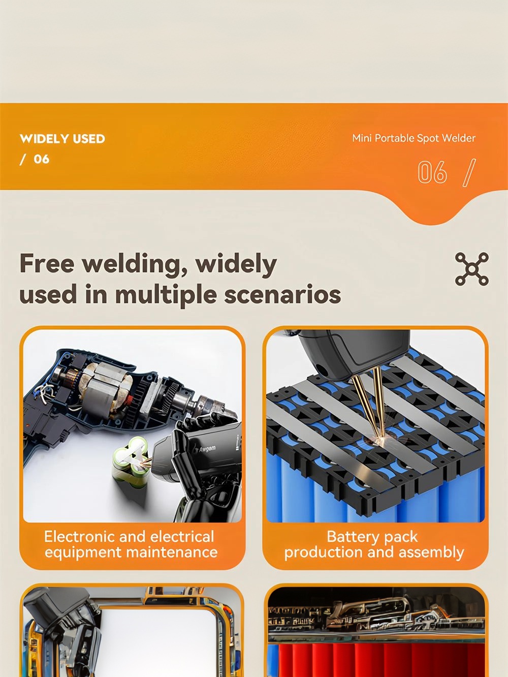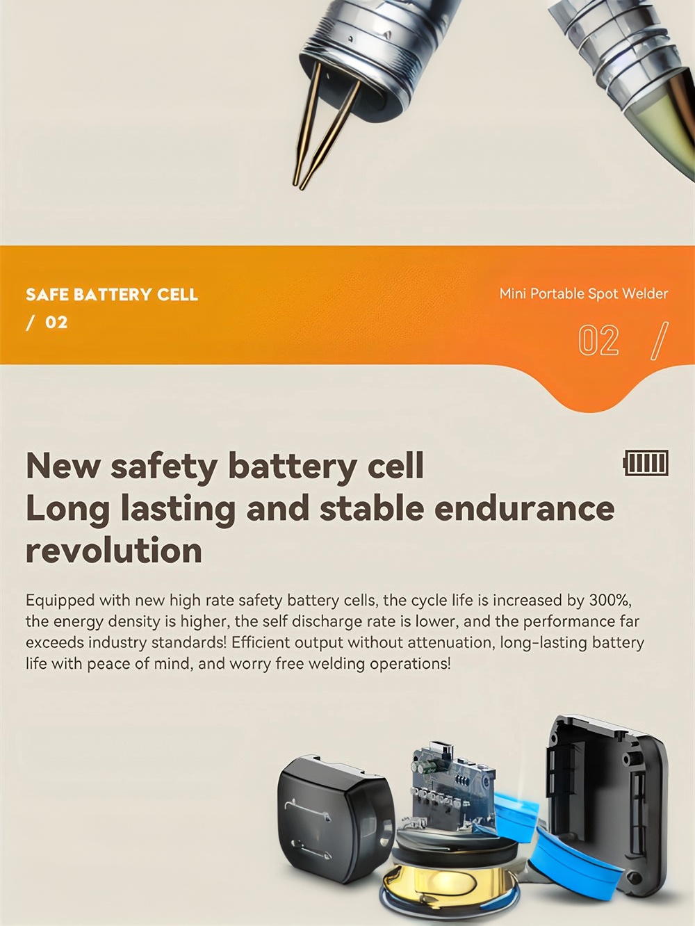 5.High-Efficiency Design: Designed for better heat dissipation with a long-lasting high-quality polymer battery. Each charge allows over 1,500 spot welds, ensuring optimized performance for extended tasks.