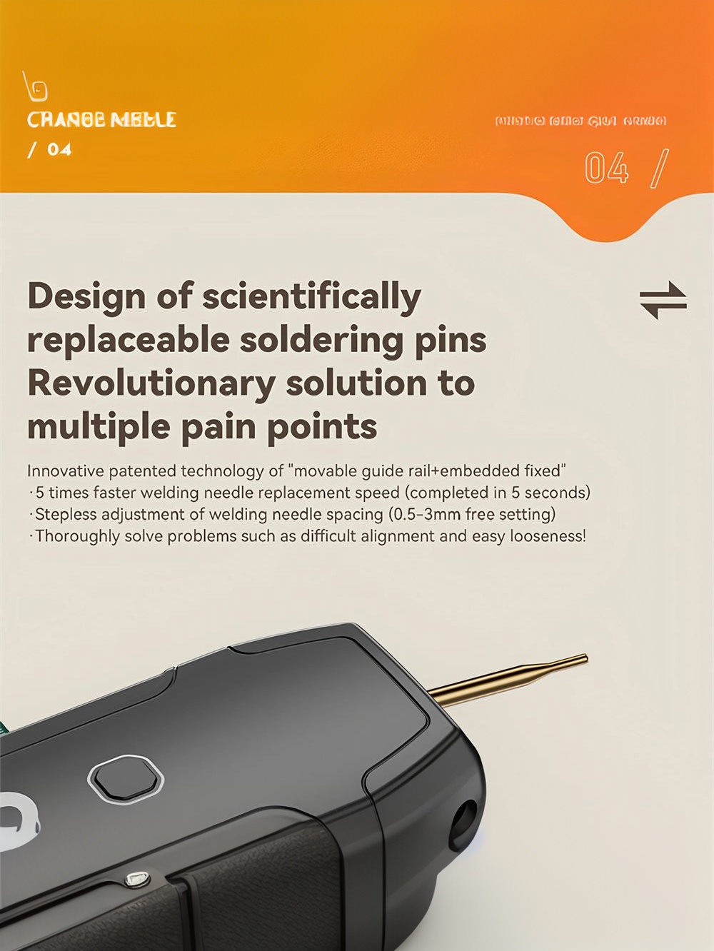 1.Integrated 2-in-1 Design: Combines the built-in power supply and soldering pen, eliminating the need for external tools and enhancing portability for on-the-go repairs.