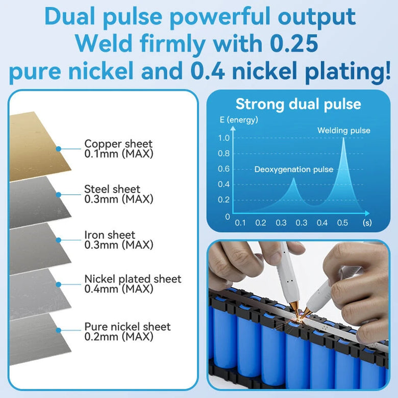 With a remarkable power capacity of 13860W, this machine delivers swift and accurate spot welding compatible with multiple materials like pure nickel, nickel-plated steel, iron, and copper.