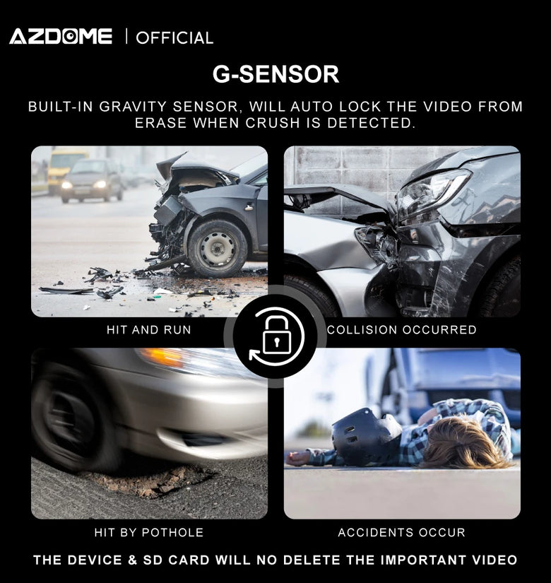 2. 3-Axis Acceleration Sensor: The dash cam is equipped with a 3-axis acceleration sensor, which enables it to detect sudden movements or collisions. This feature ensures that any significant event or accident is captured and saved securely, providing valuable evidence for insurance claims or legal purposes.