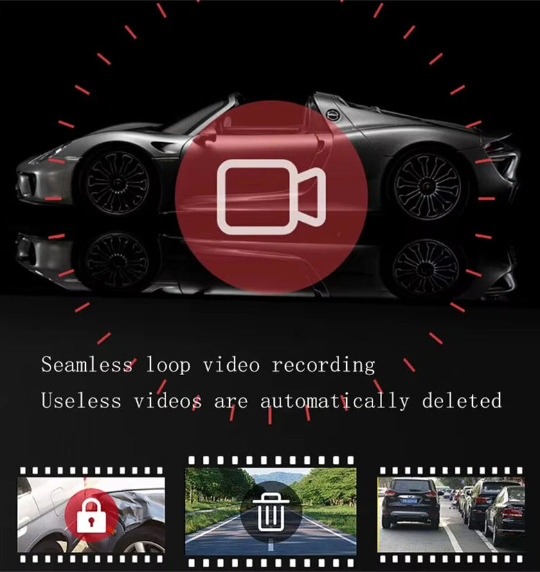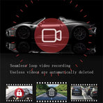 - Automatic loop recording and 24h parking monitor for uninterrupted footage and vehicle protection.