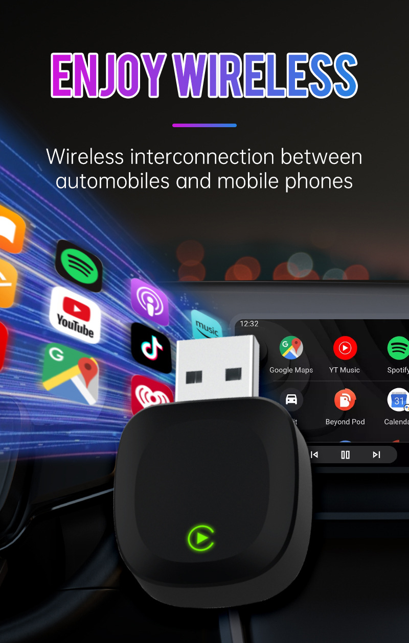- Seamless Wireless Connectivity: Enjoy uninterrupted wireless interconnection between your car and smartphone. Supports both CarPlay and Android Auto, providing a versatile solution to integrate your mobile device with your vehicle’s infotainment system.