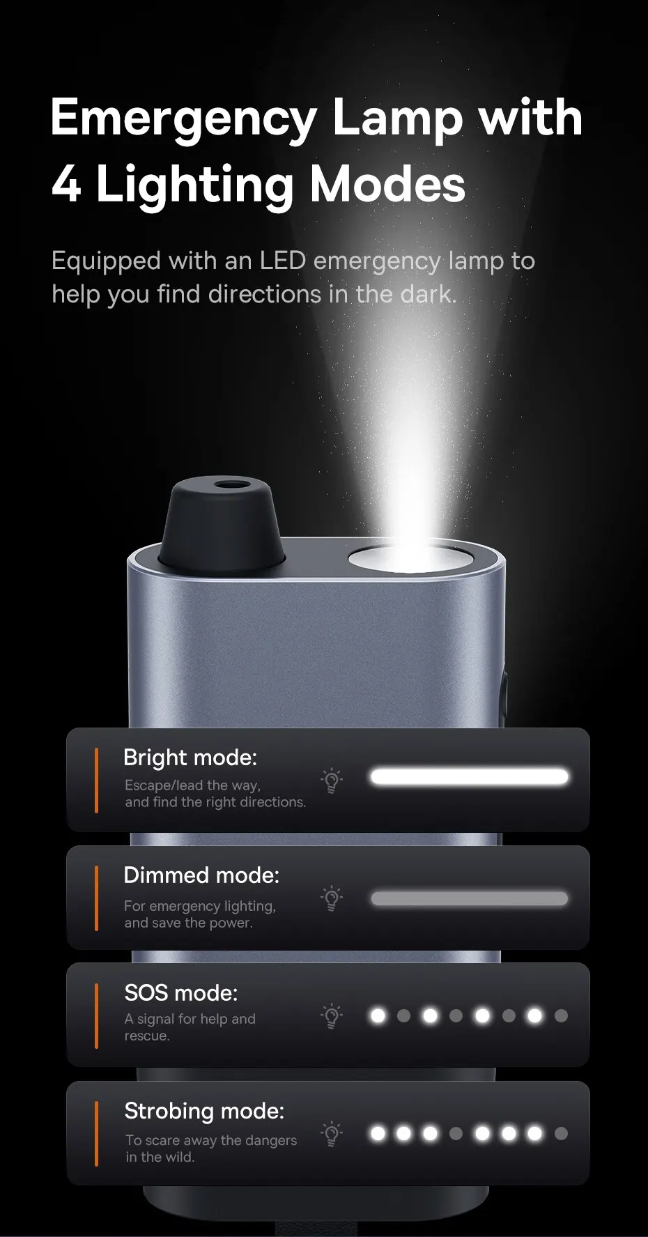 3. Emergency Illumination: The built-in emergency lamp delivers consistent brightness in low-light environments, ensuring clarity and safety when navigating post-crisis situations.