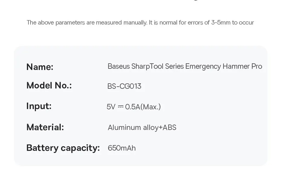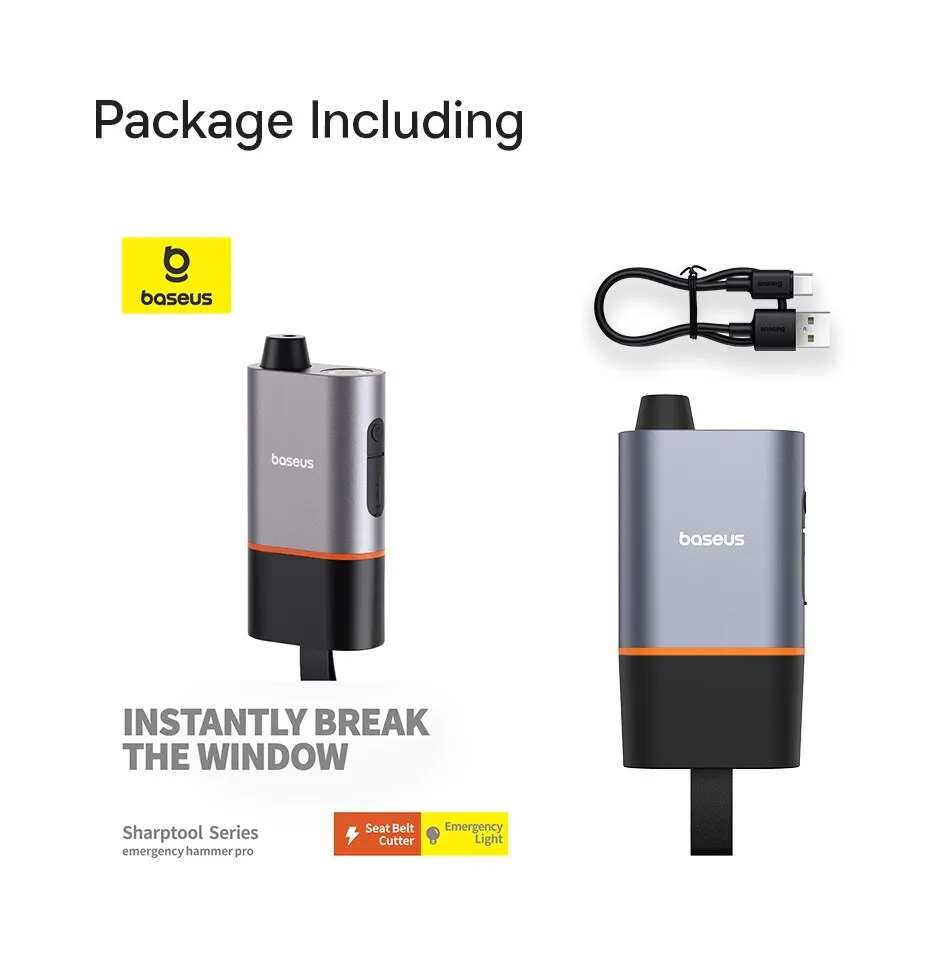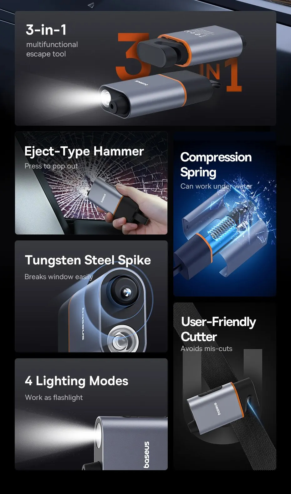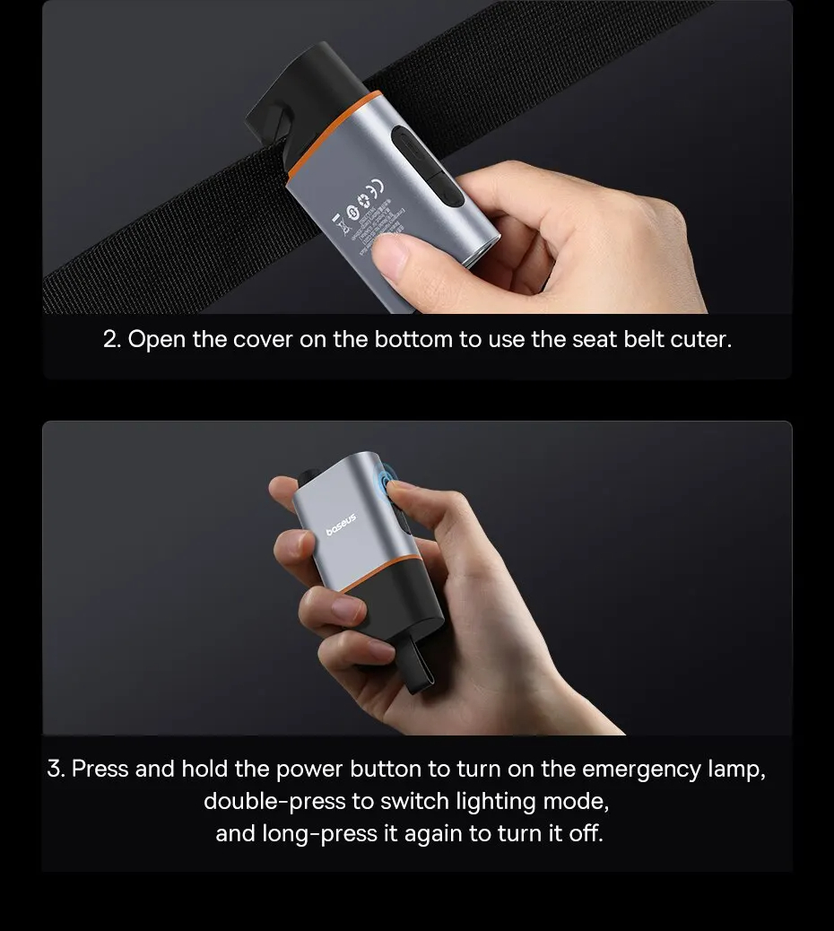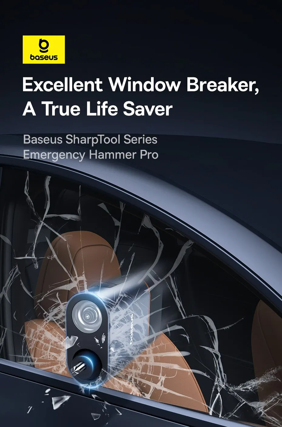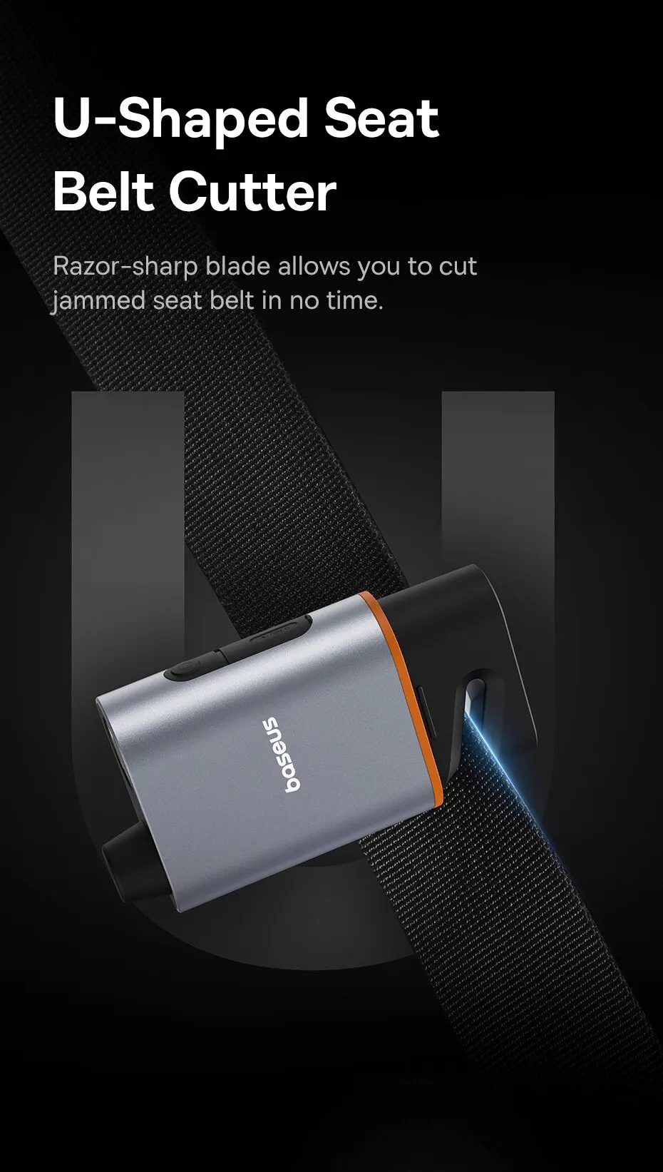 • Baseus 3 in 1 Car Safety Hammer U-shaped Emergency Auto Escape Seat Belt Cutter Window Class Break with SOS LED Lamp