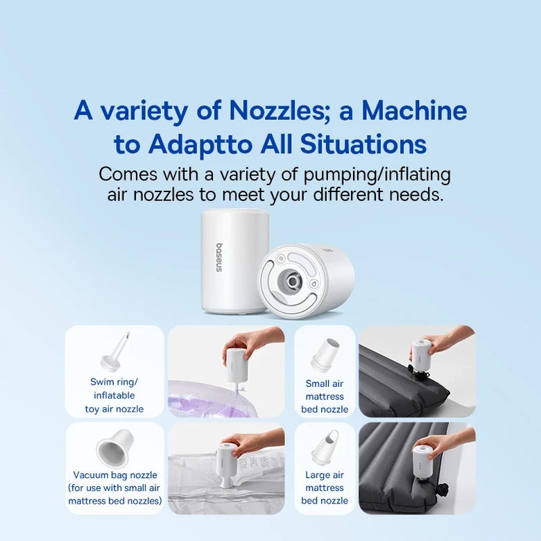 - Multiple Air Nozzles for Versatile Use: This versatile pump comes with multiple air nozzles, making it suitable for a variety of inflating and pumping scenarios. Whether you need to inflate a mattress, a kayak, or other inflatable gear, this pump is equipped to handle all your needs.