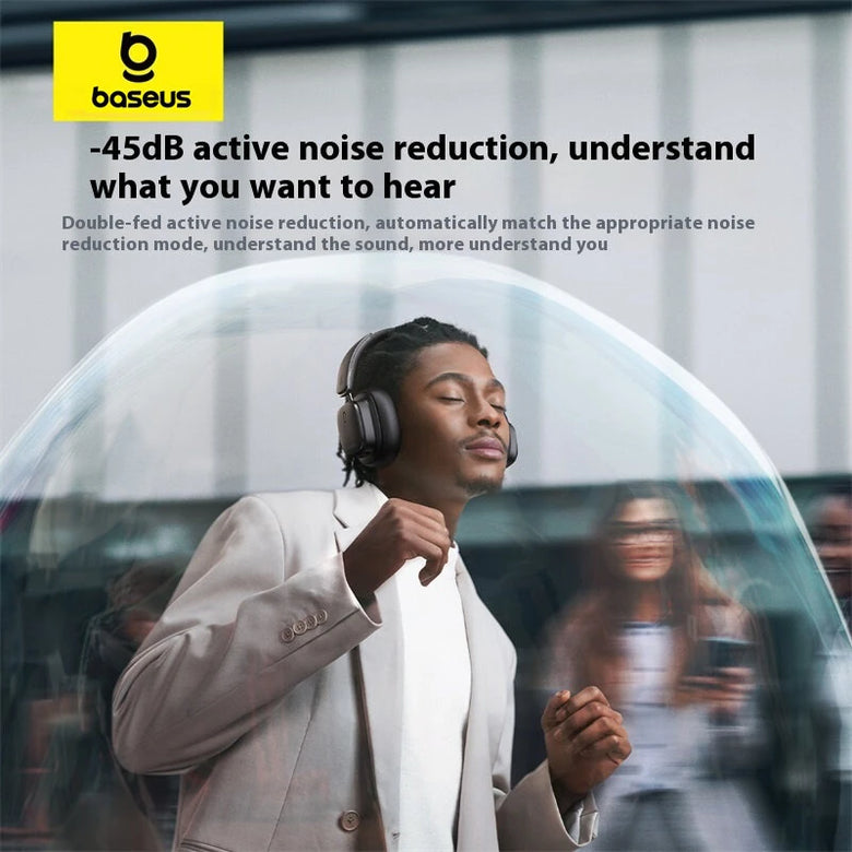 • Baseus Bowie H1s Pro ANC Headset bluetooth 5.4 Headphone -45dB Active Noise Cancelling Dual Mic Noise Reduction 50mm Driver Unit Spatial Audio 65H Playback Low Game Delay 3.5mm Wired Foldable On-ear Headphones