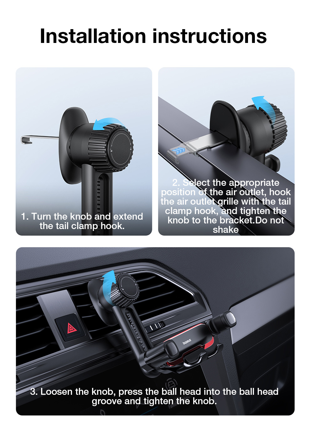 3. Easy Installation: Designed with an air outlet mount, it provides sturdy and secure place for your phone without blocking the air vent of your vehicle.