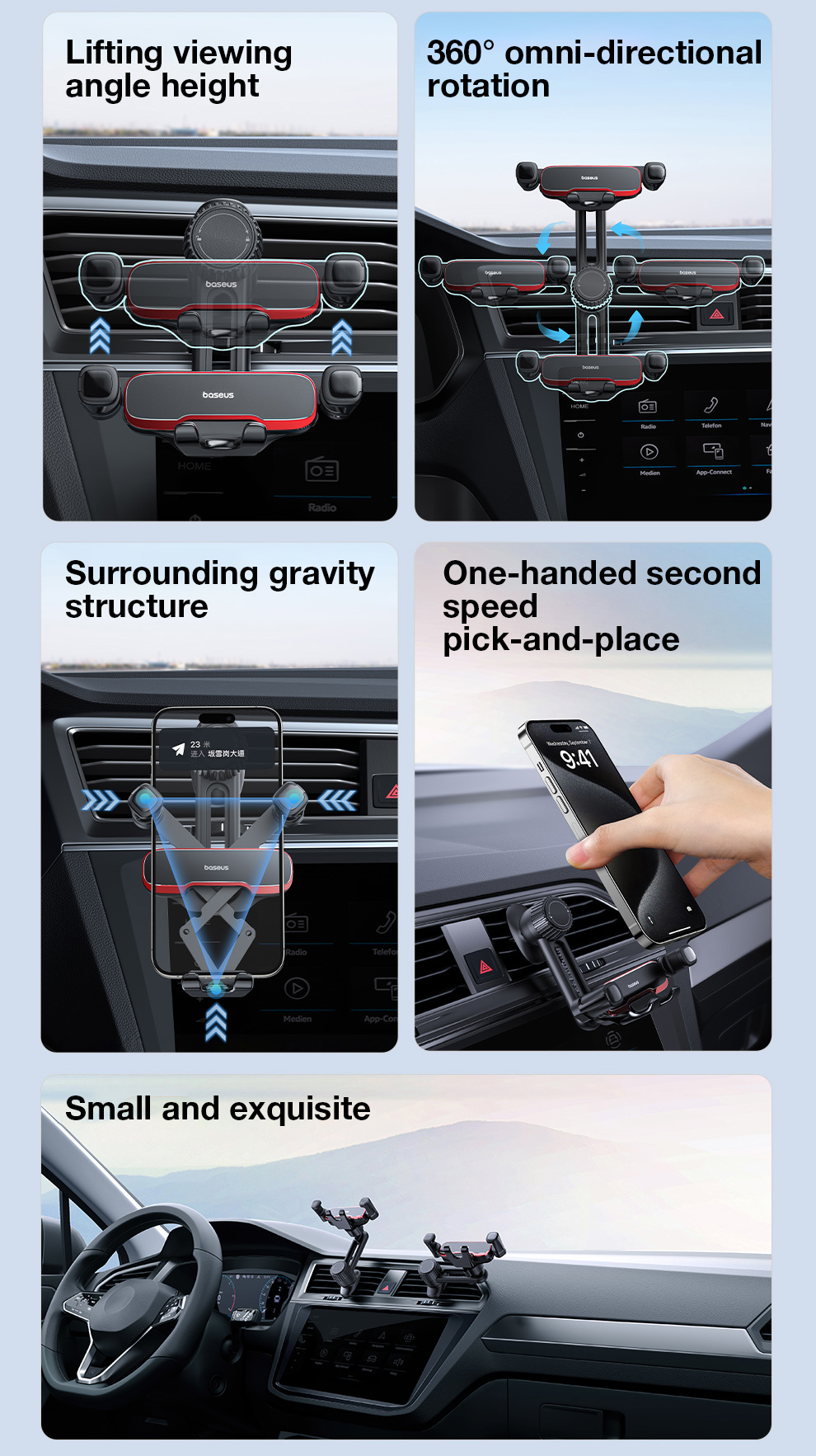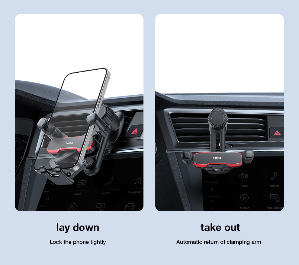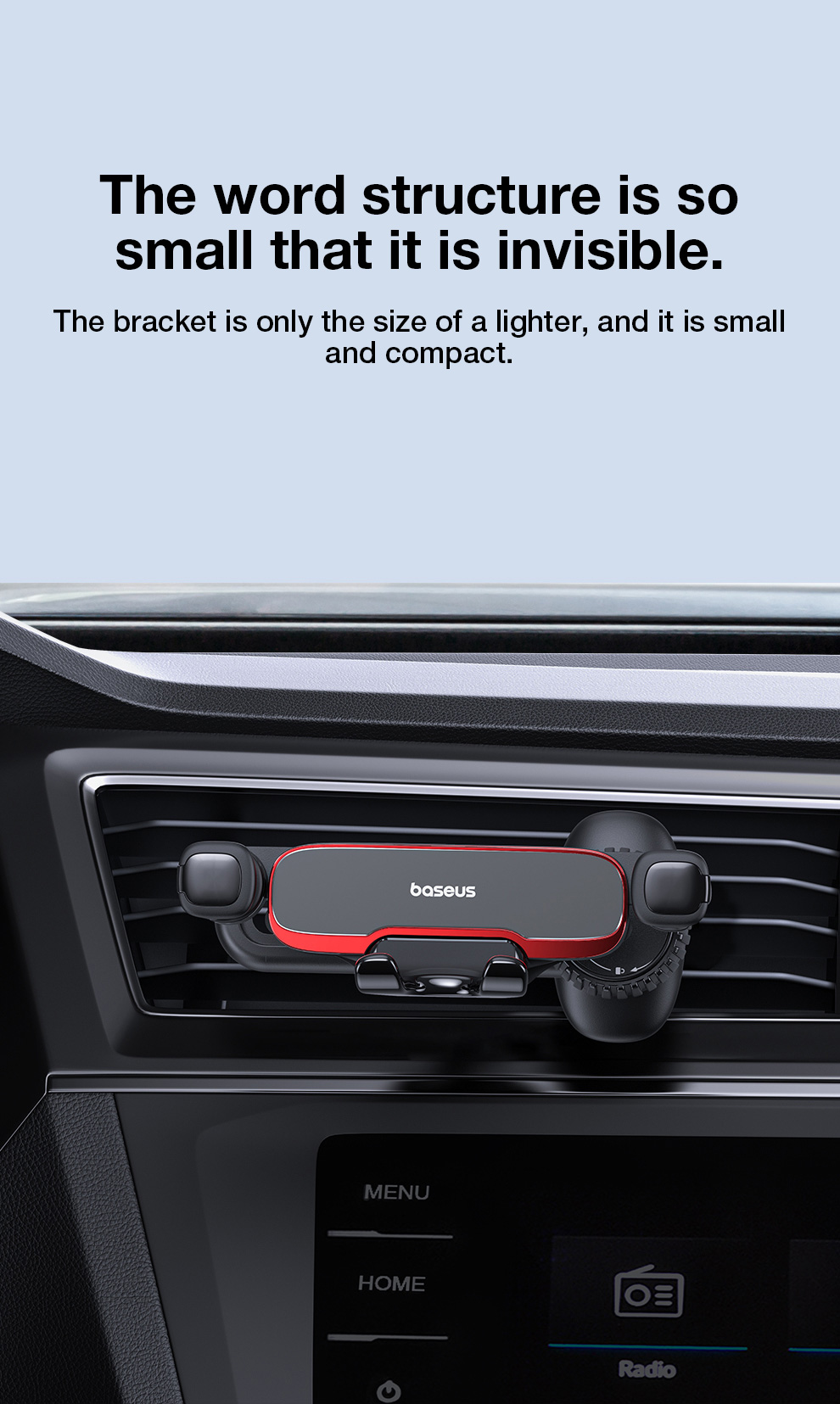 • Baseus BS-CM040 Horizontal Car Phone Holder Metal Gravity Car Air Vent Cellphone Stand 360 Universal Rotation Ball for 4.7inch-6.5inch Mobile Phone