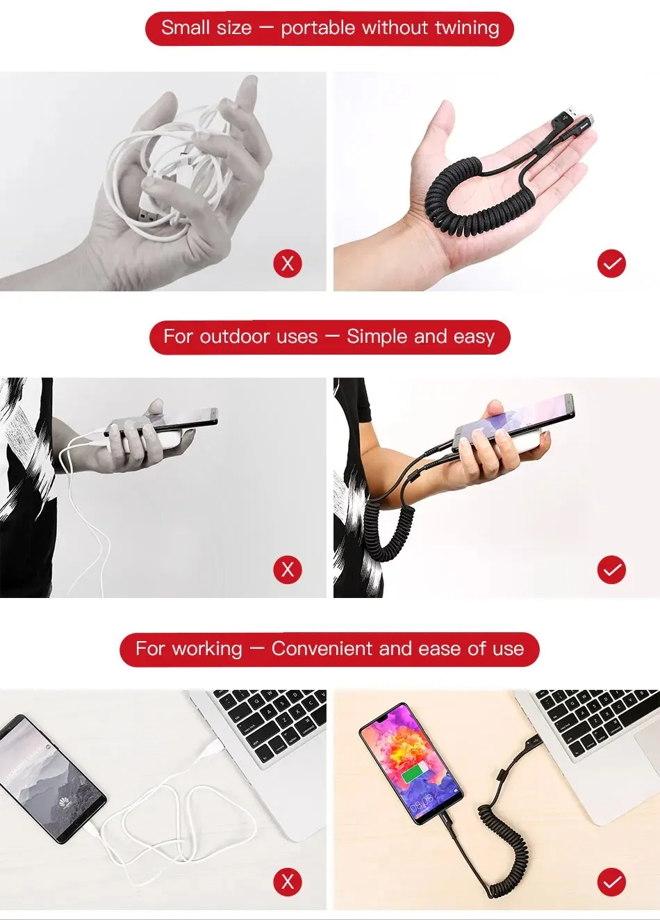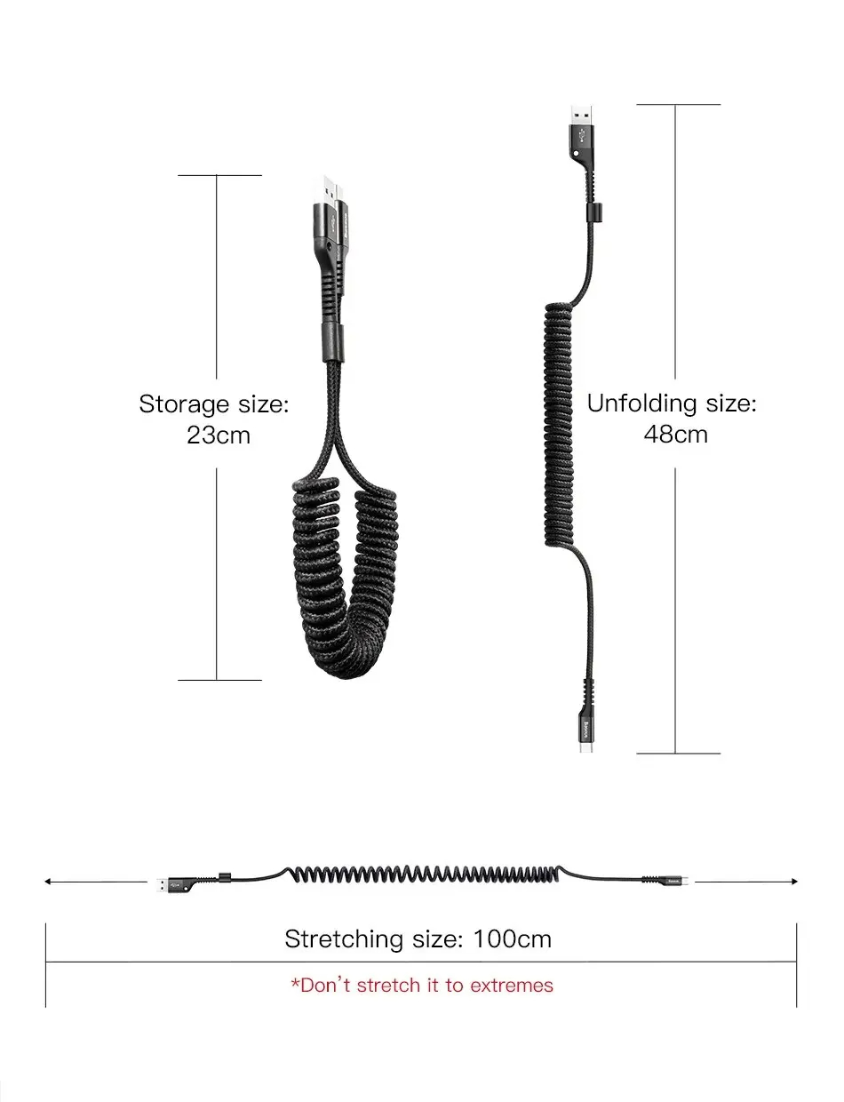 The retractable structure of the cable makes it compact and portable, allowing easy storage in bags, cars, or on desks while avoiding tangles or knots.