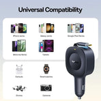 • Baseus Primetrip VR2 30W 2-Port USB Car Charger Adapter Retractable USB-C Cable+USB-C Port Support PD QC SCP Fast Charging for iPhone 16 15 Pro 14 13 12 Pro Max for Xiaomi MIX Flip 2 for Huawei Pura Ultra2