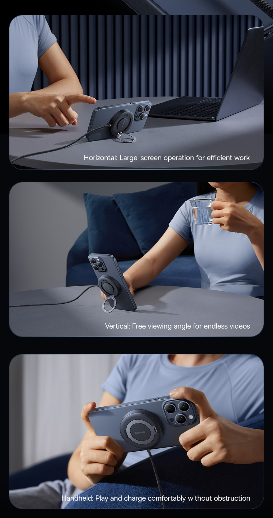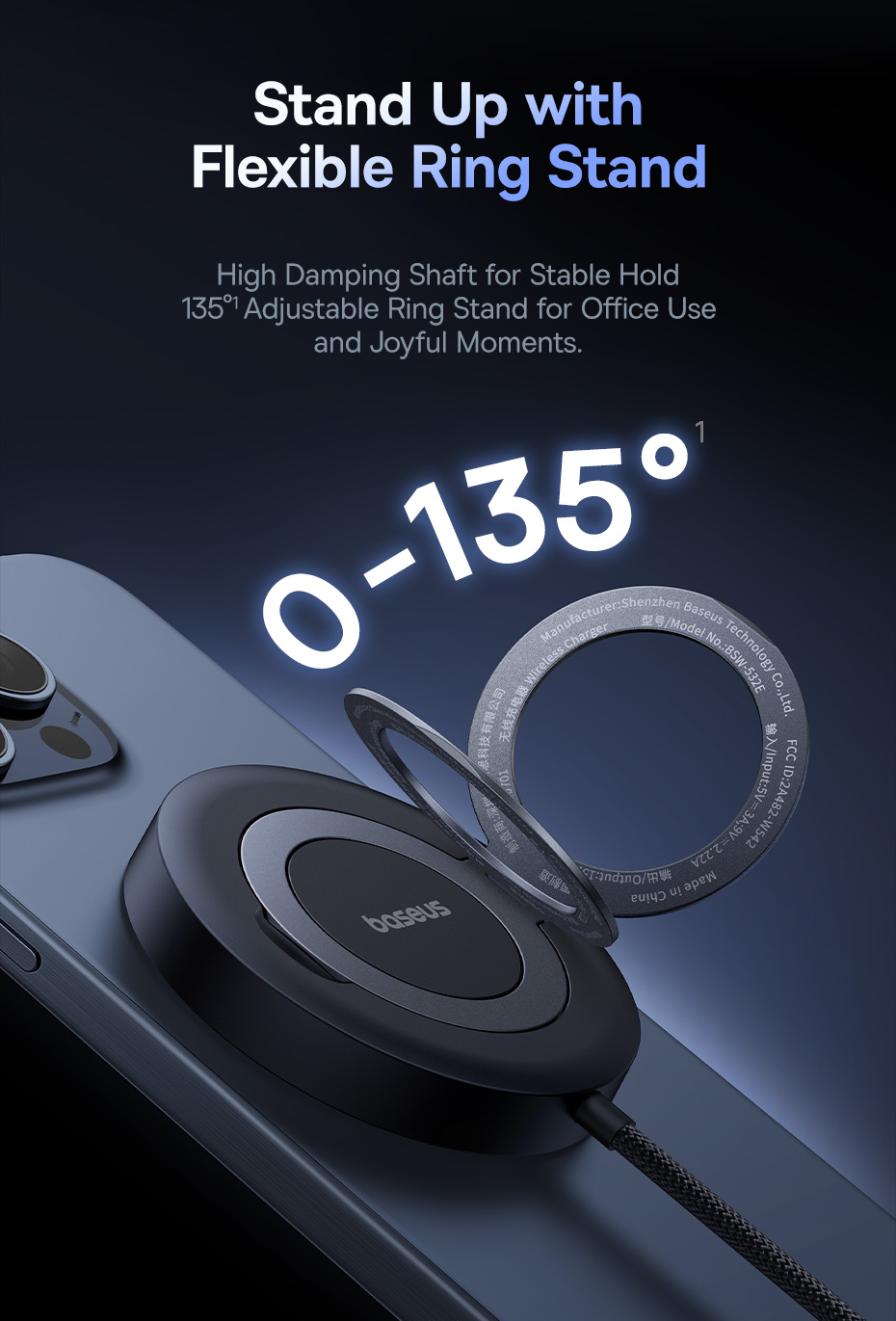 3. User-friendly Design: The adjustable bracket angle (0-135°) allows for hands-free viewing while charging, making it convenient for watching videos or making video calls.