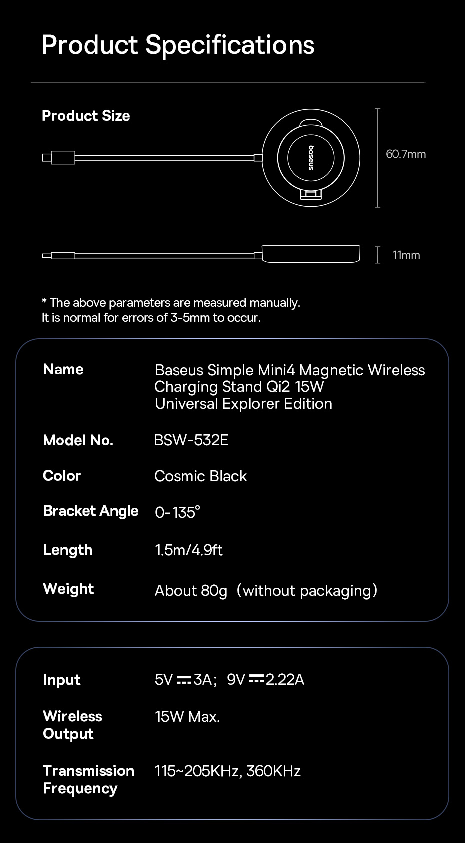 Package Includes:1x Baseus Simple Mini4 Wireless Charger