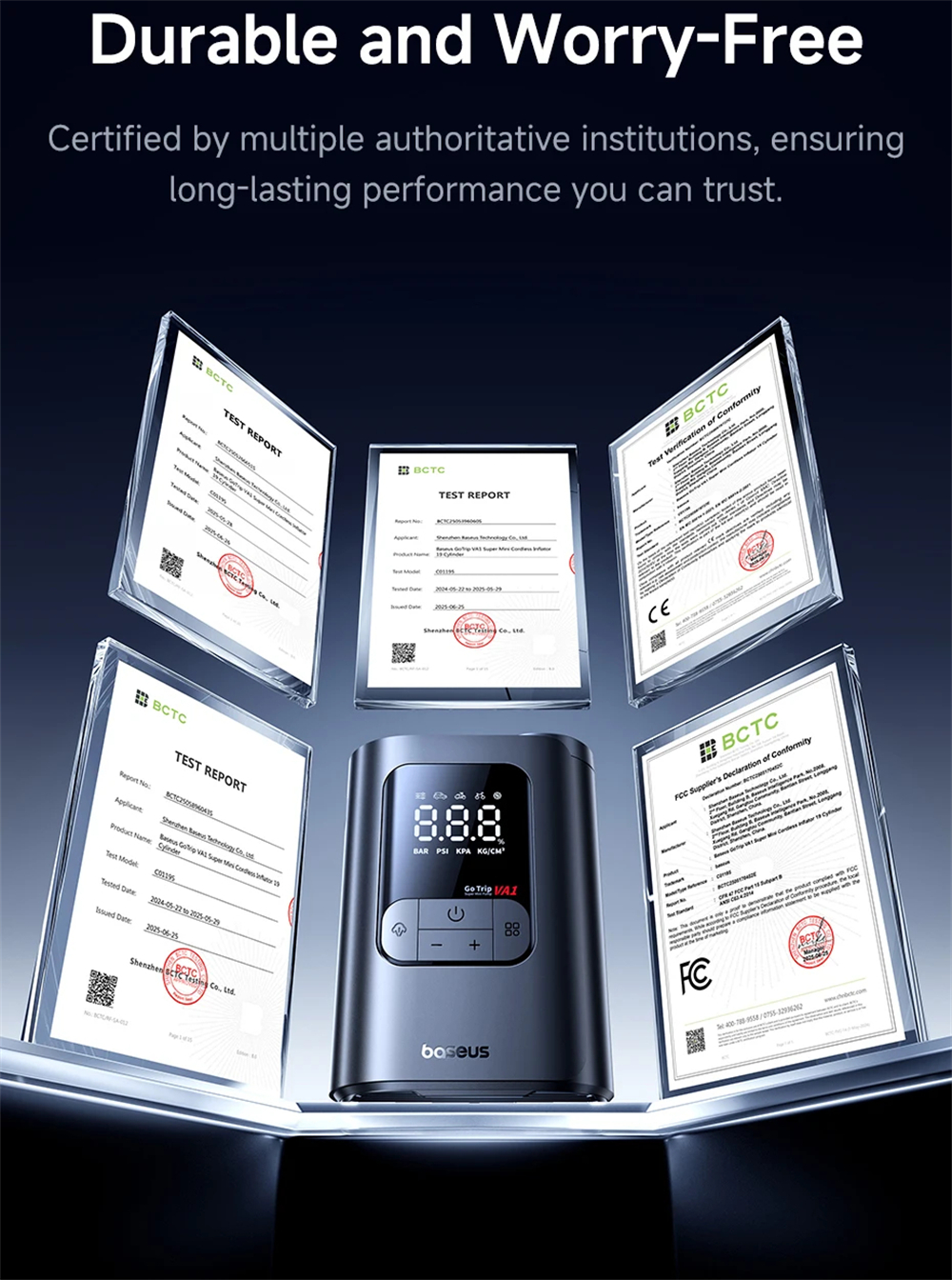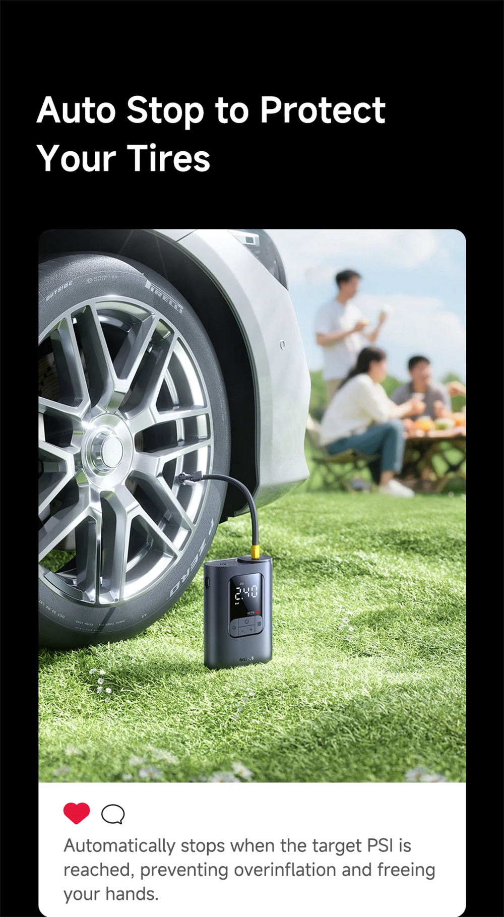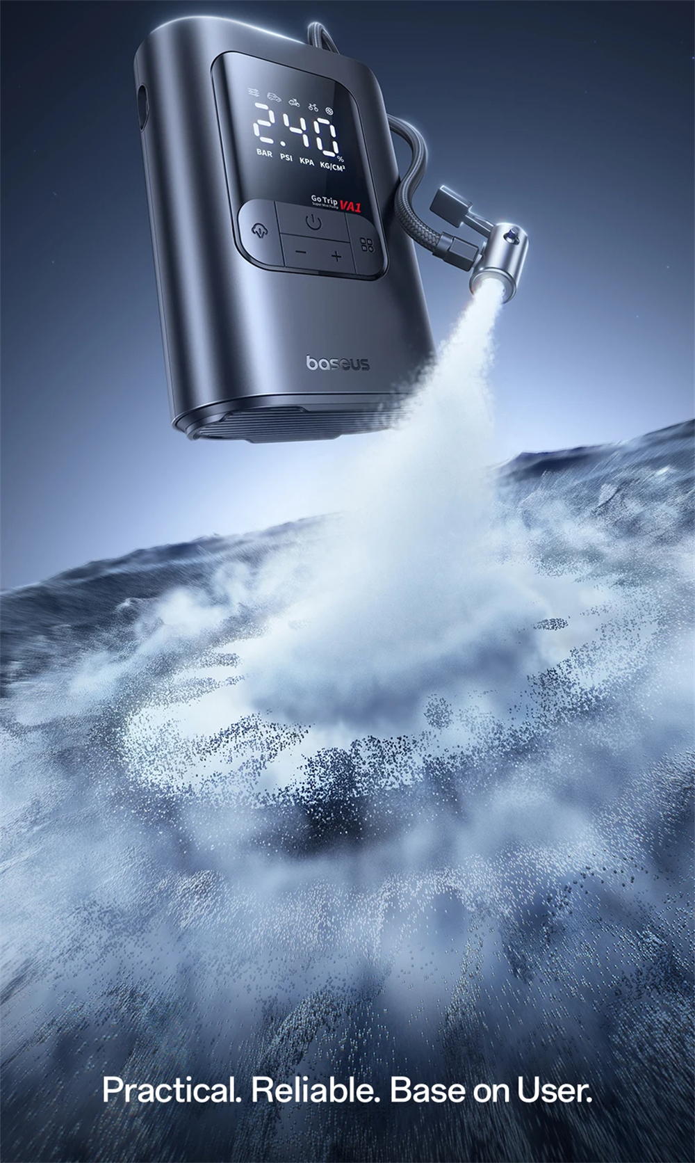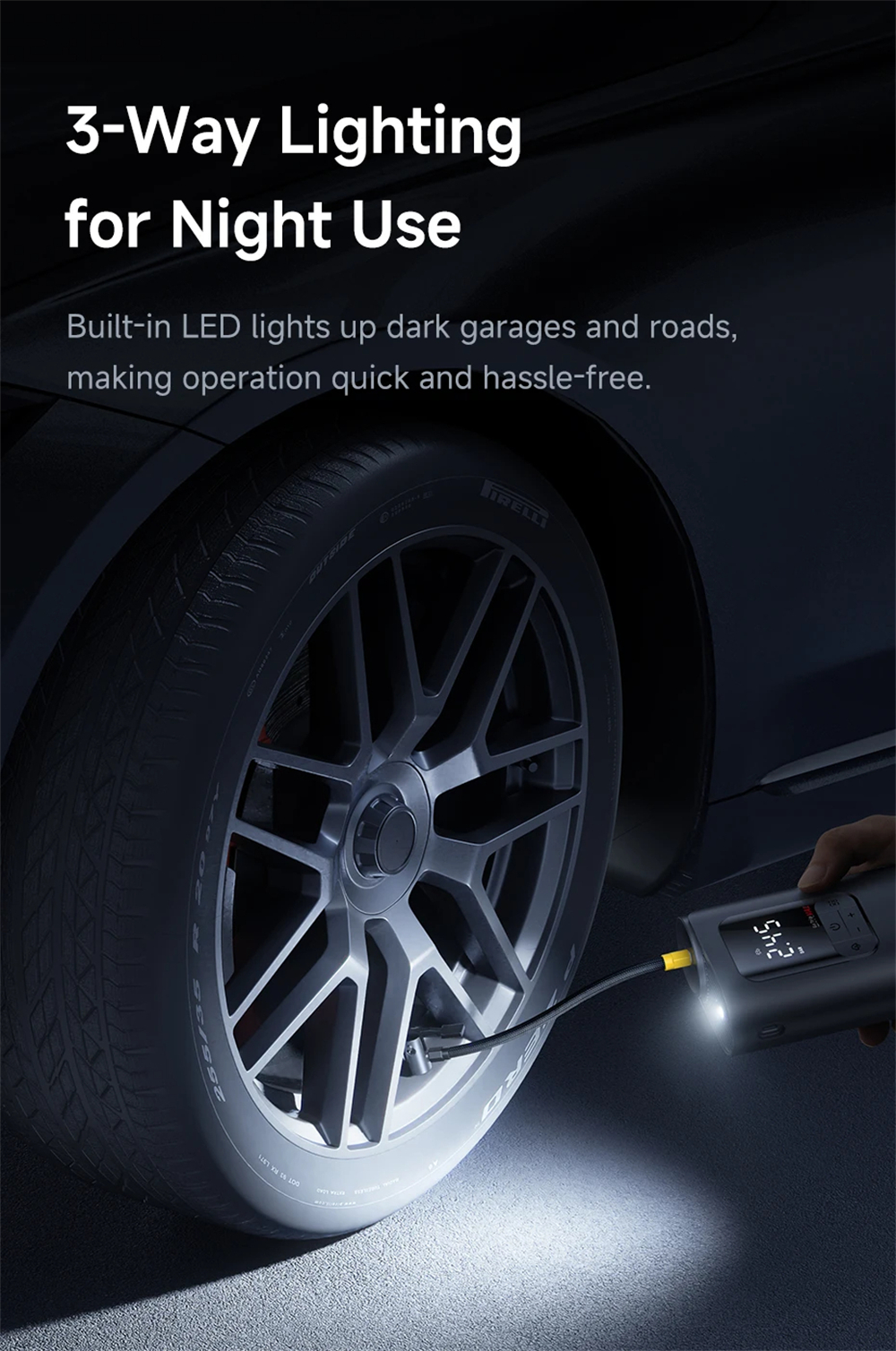 - Accurate digital pressure measurement ±0.05 BAR ensures safe inflation.