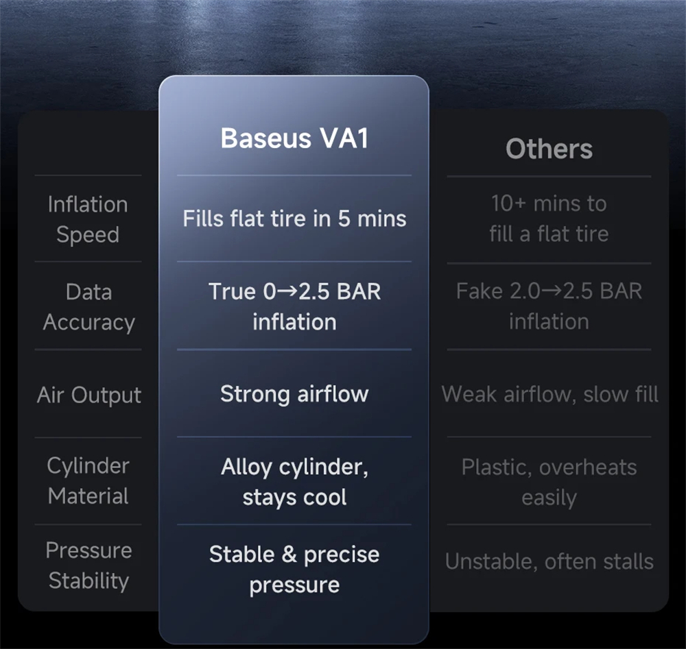 - Rapid inflation fills tires from 0 to 2.5 BAR in 5 minutes.