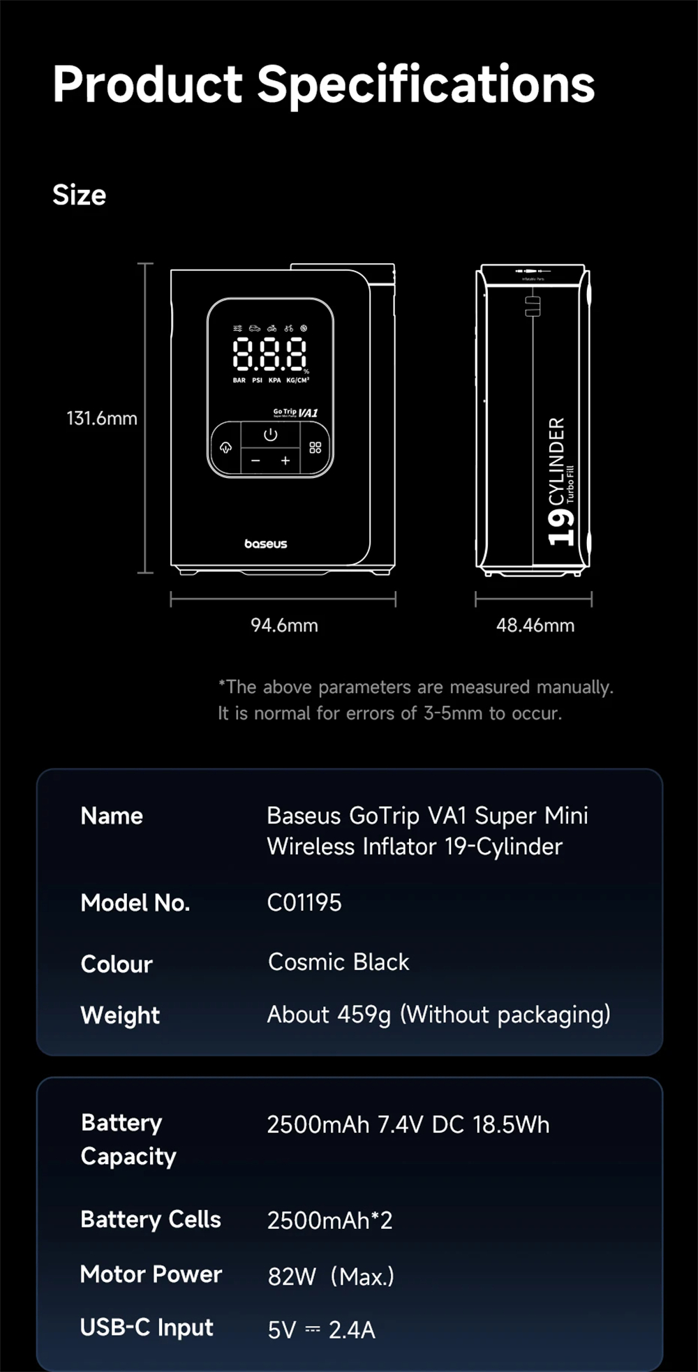 Name: GoTrip VA1 Super Mini Wireless Inflator 19-Cylinder