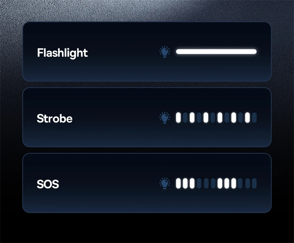 - Built-in LED offers flashlight, strobe, and SOS functions.