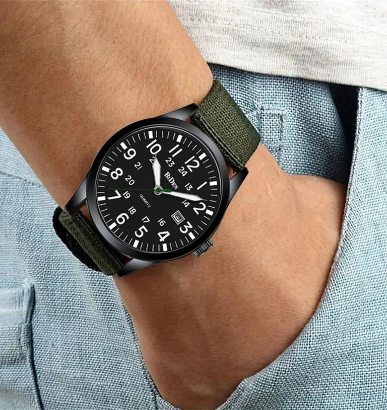 • BIDEN Simple Calendar Sports Waterproof Quartz Watch Comfortable Nylon Strap Luminous Pointer Men Watch with Alloy Case
