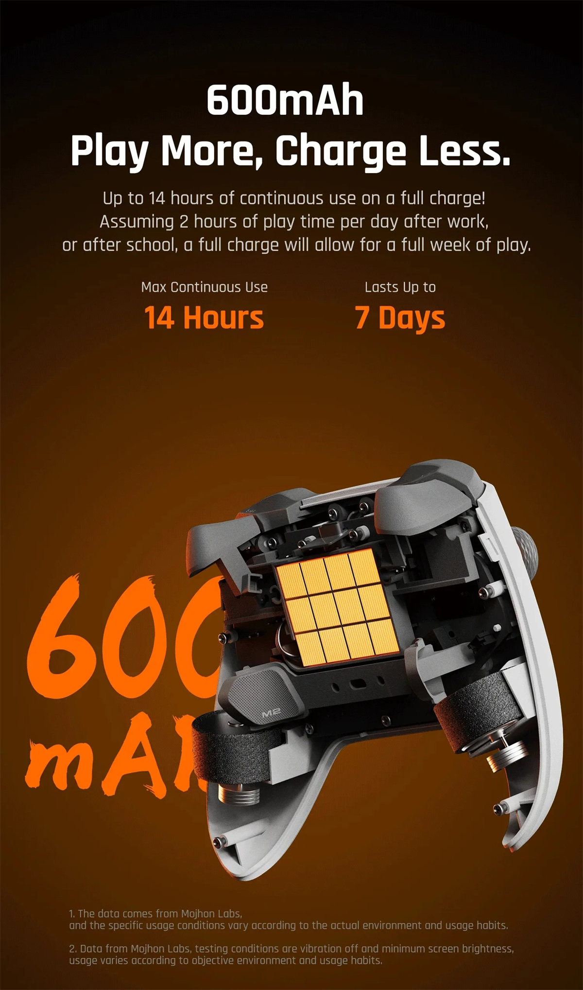 4. 600mAh Long-Lasting Battery: Up to 14 hours of continuous use or 7 days of light gaming use per charge.