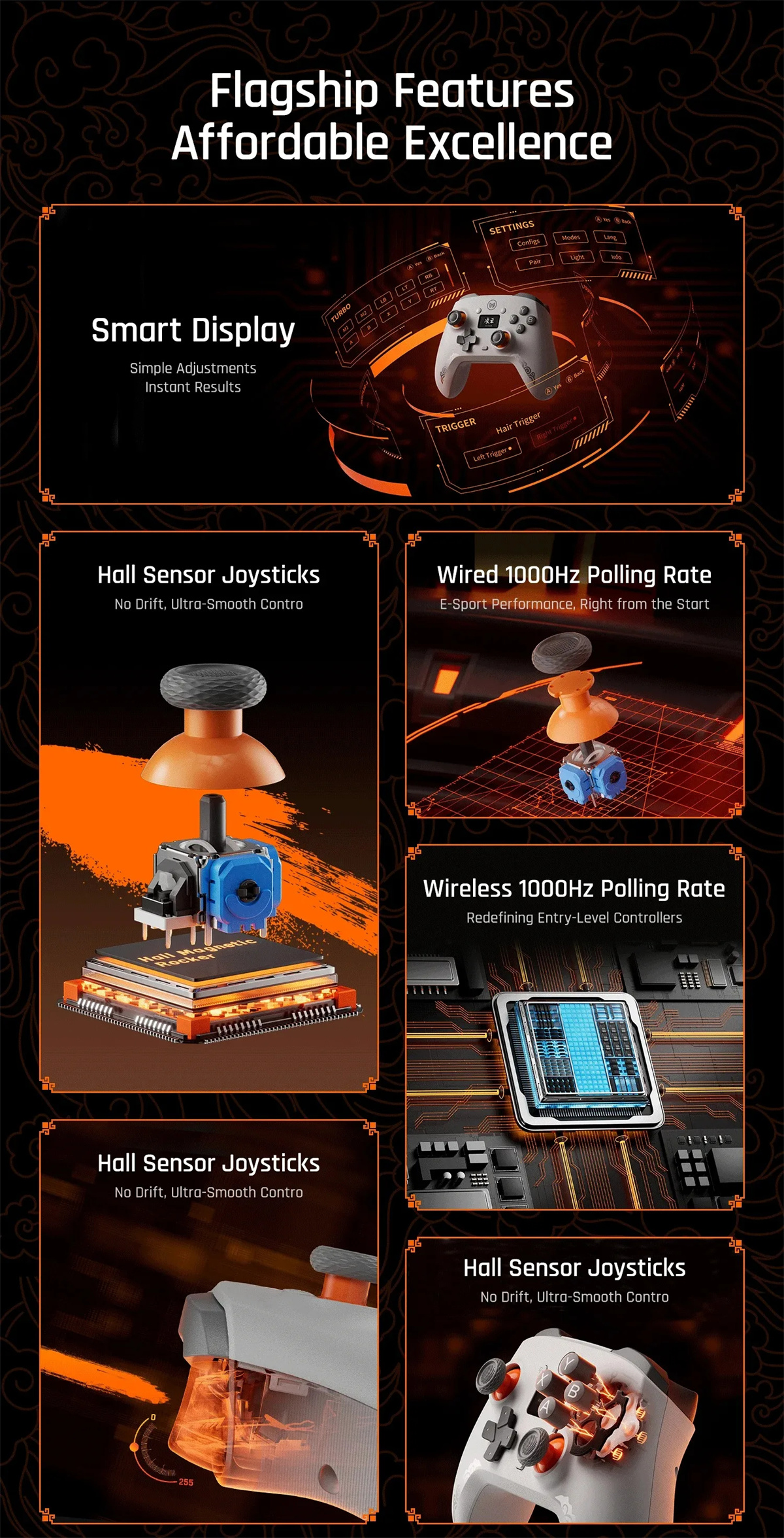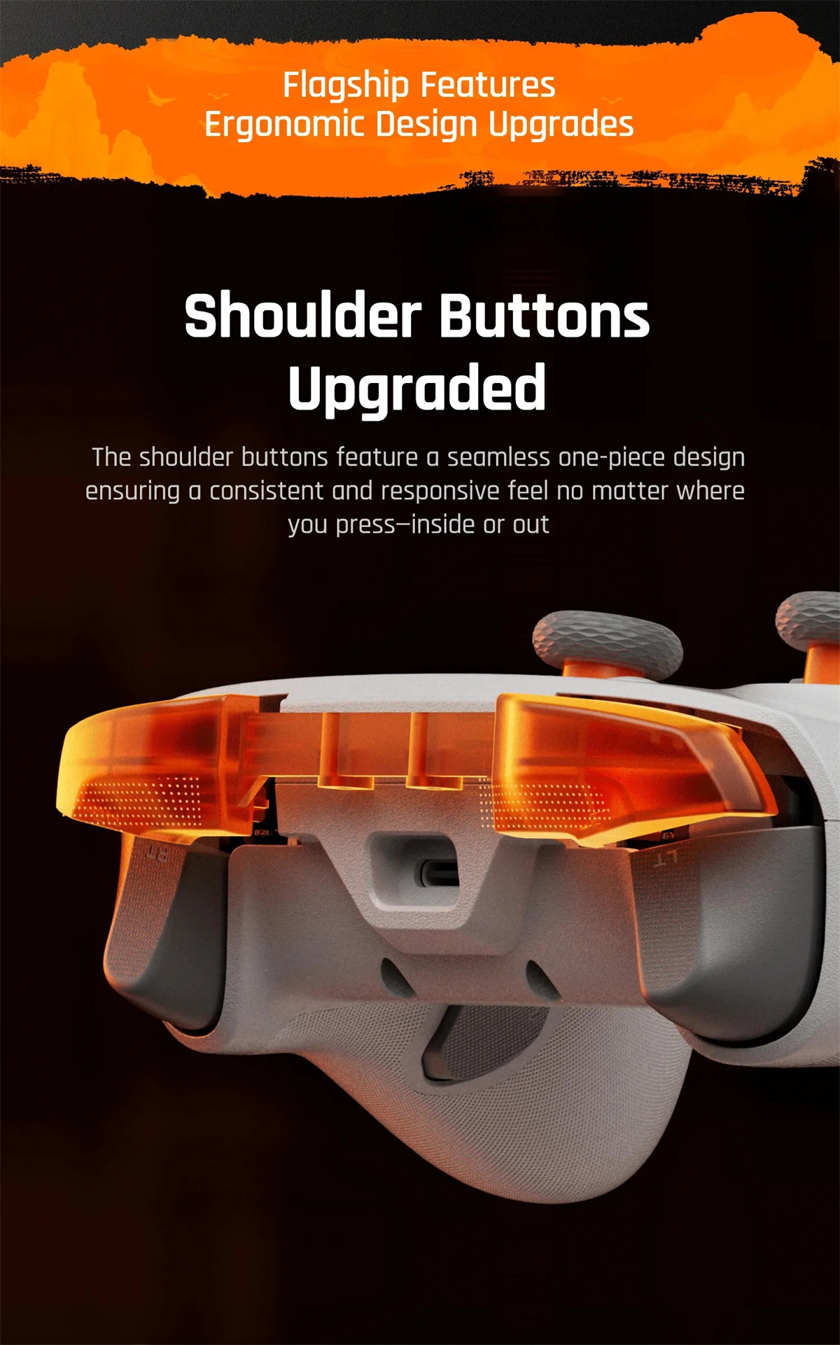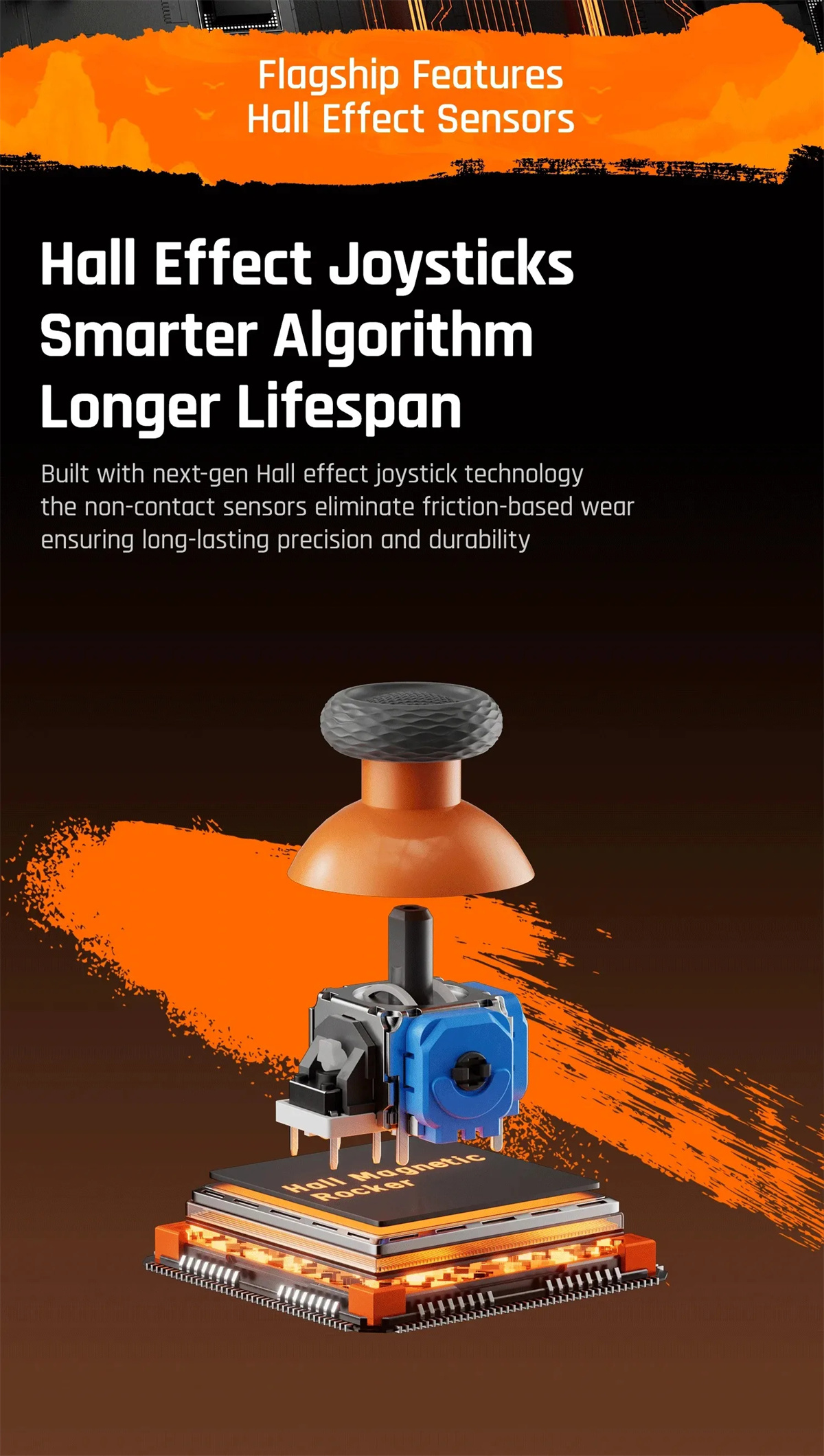 2. Hall Effect Joysticks & Triggers: Designed for precision with magnetic sensors, offering smooth control and eliminating drift issues.