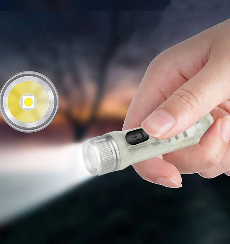 Mini Keychain Pocket Torch with Buckle USB Rechargeable EDC LED Light Flashlight Lamp Waterproof Portable Light for Emergency Outdoor