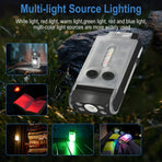 2. 12 working modes: In order to meet the lighting needs of different scenes, we have designed different light colors and modes, and also added a 120 DB buzzer alarm function. Press and hold the button at the side light button to turn on the alarm function, and release it to turn it off.