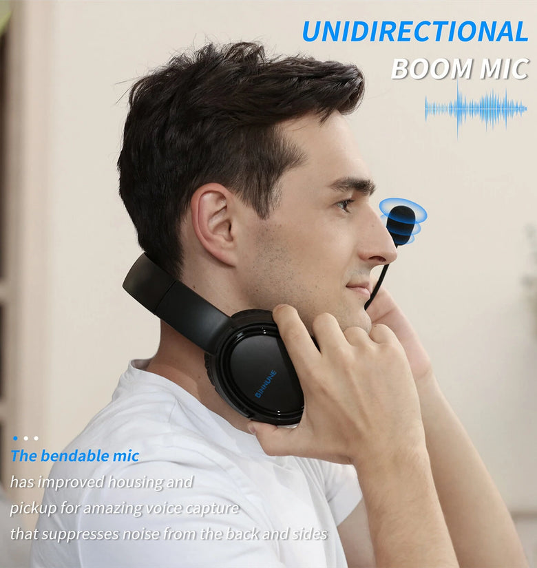 • BINNUNE BG02 Gaming Headset Wired Headphones with Microphone Titanium 50mm Drivers 3.5mm Wired Connection Headphones