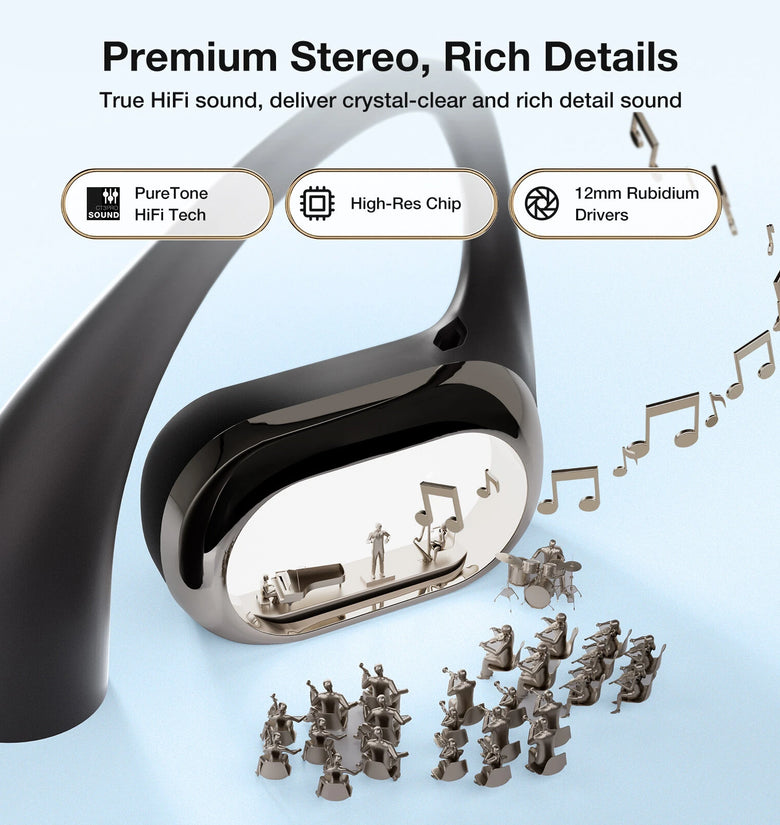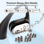AI Crystal-Clear Calls: Open air headphones with AI 4-mics ENC technologyfor crystal-clear calls. The open ear headphones wireless feature directional sound transmission technology, offering 2X sound leakage protection to minimize sound exposure and maintain privacy. Take important calls with ease!Enjoy Listening Long: The wireless open ear headphones offer a total battery life of up to 40 hours. No more battery anxietyIPX5 Waterproof: Exclusive SweatSafe technology prevents sweat or rain from damaging the chamber. open earbuds become your sports partner,whether you're sweating it out in the gym or caught in a sudden light rain while running outdoors, They adapt easily to various sports activities
