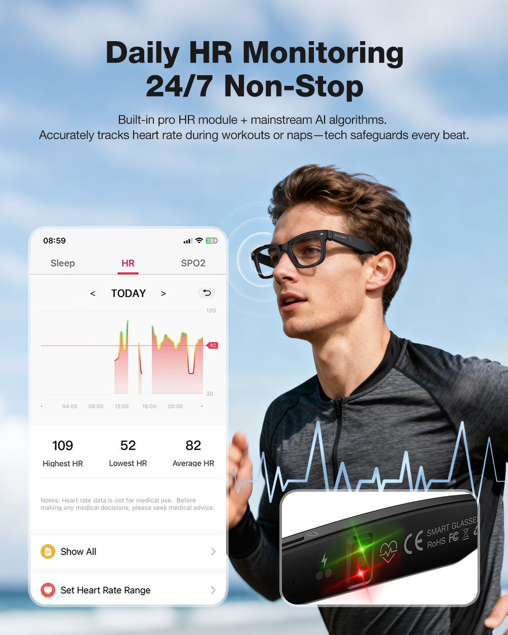 2. Health monitoring with HR and SpO₂ tracking enabled by integrated sensors.