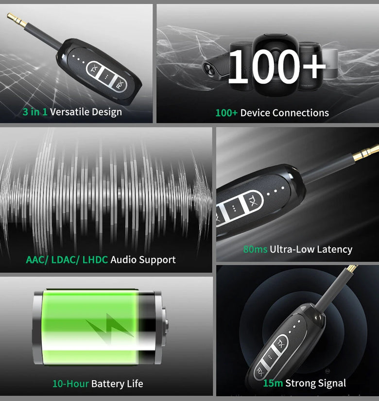 2. Connect Unlimited RX Receivers – Broadcast audio to multiple speakers/ headphones simultaneously.