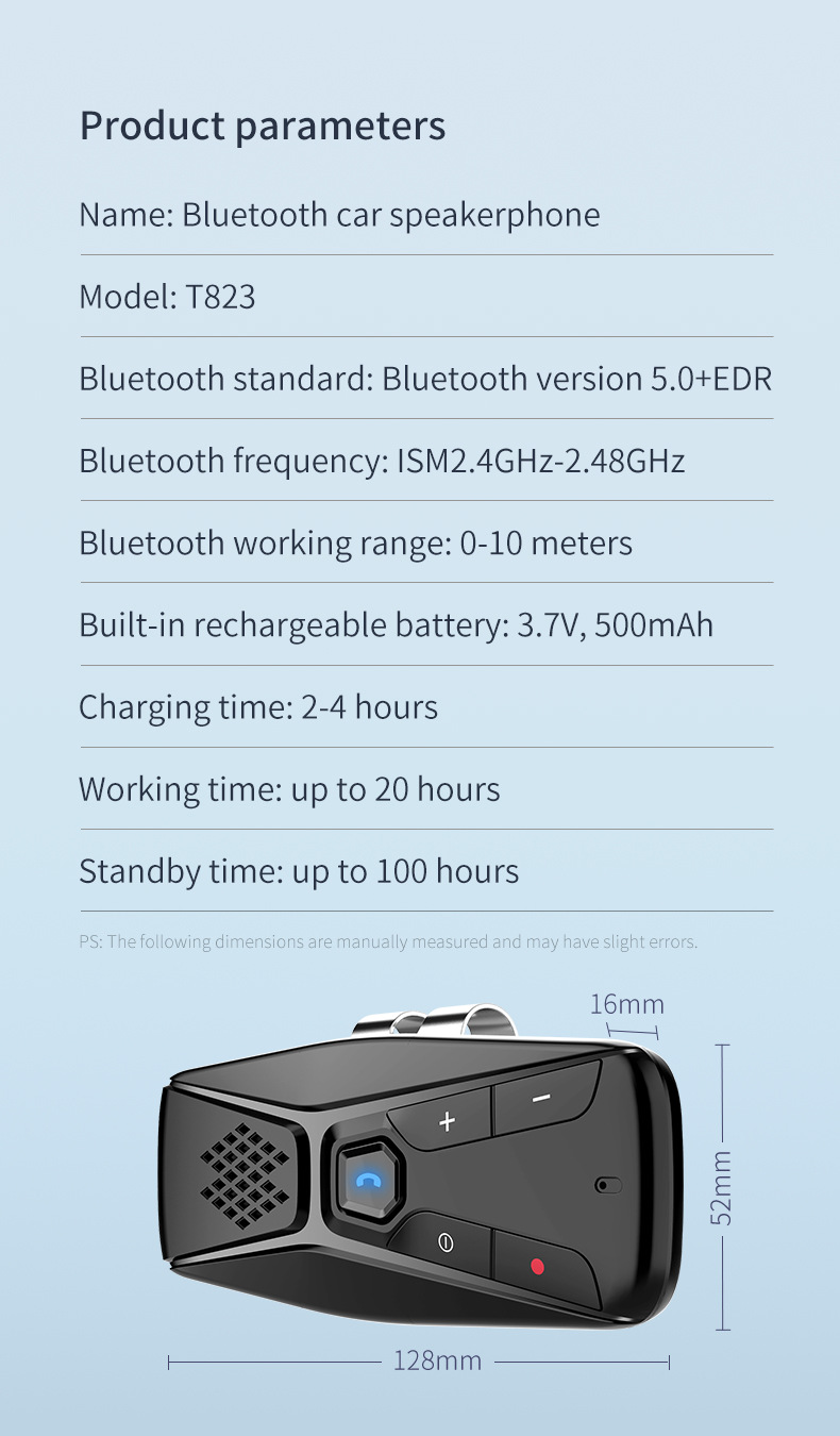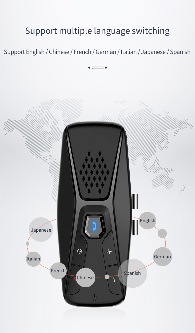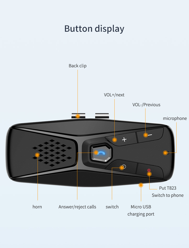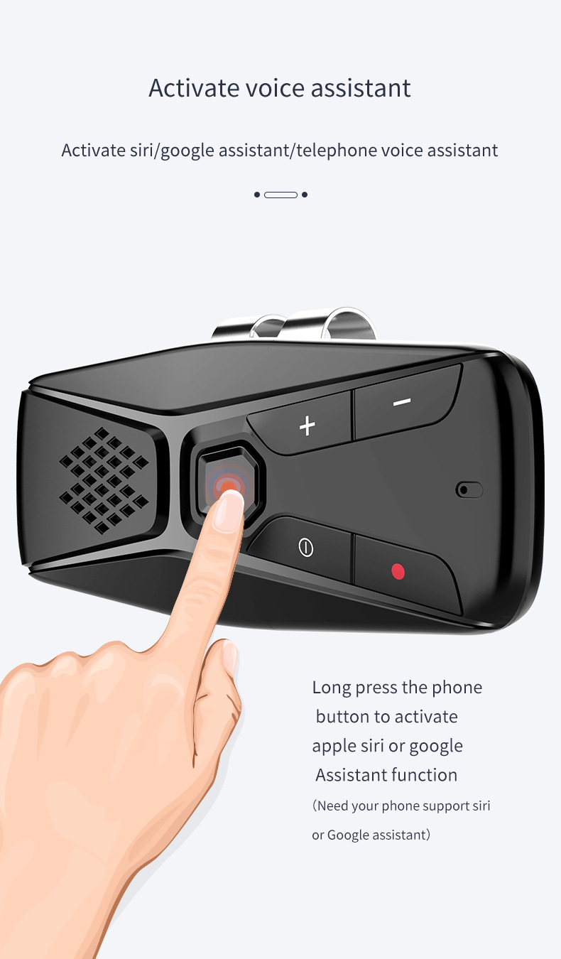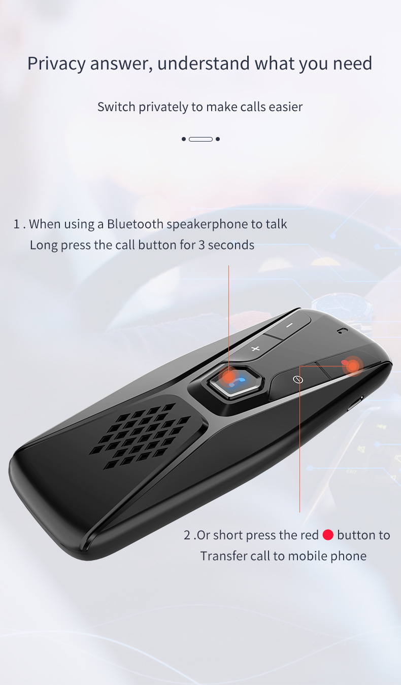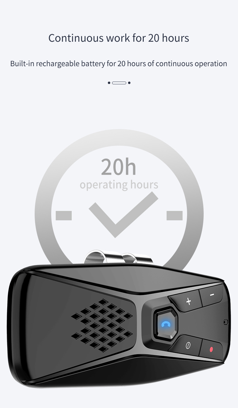 Equipped with a high-capacity 500mAh rechargeable battery, this Bluetooth Car Kit offers up to 20 hours of continuous operation, effectively supporting long road trips and extended use without frequent recharging.