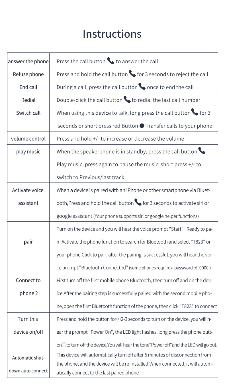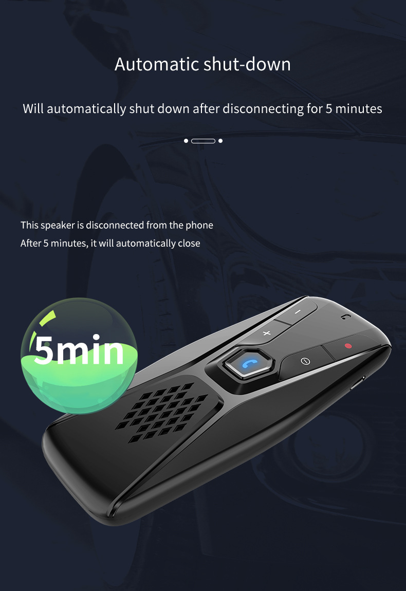 • Bluetooth Car Kit Handsfree Speakerphone Wireless with Microphone Bluetooth 5.0 Automatic Shut Down and Auto Connect