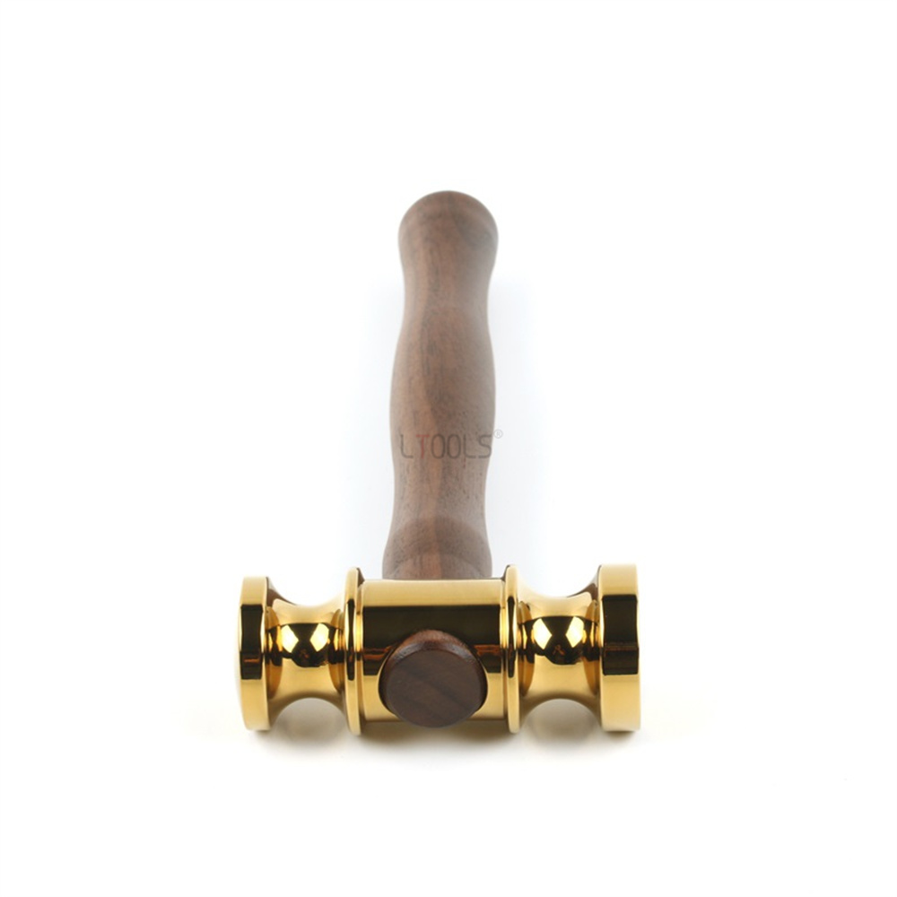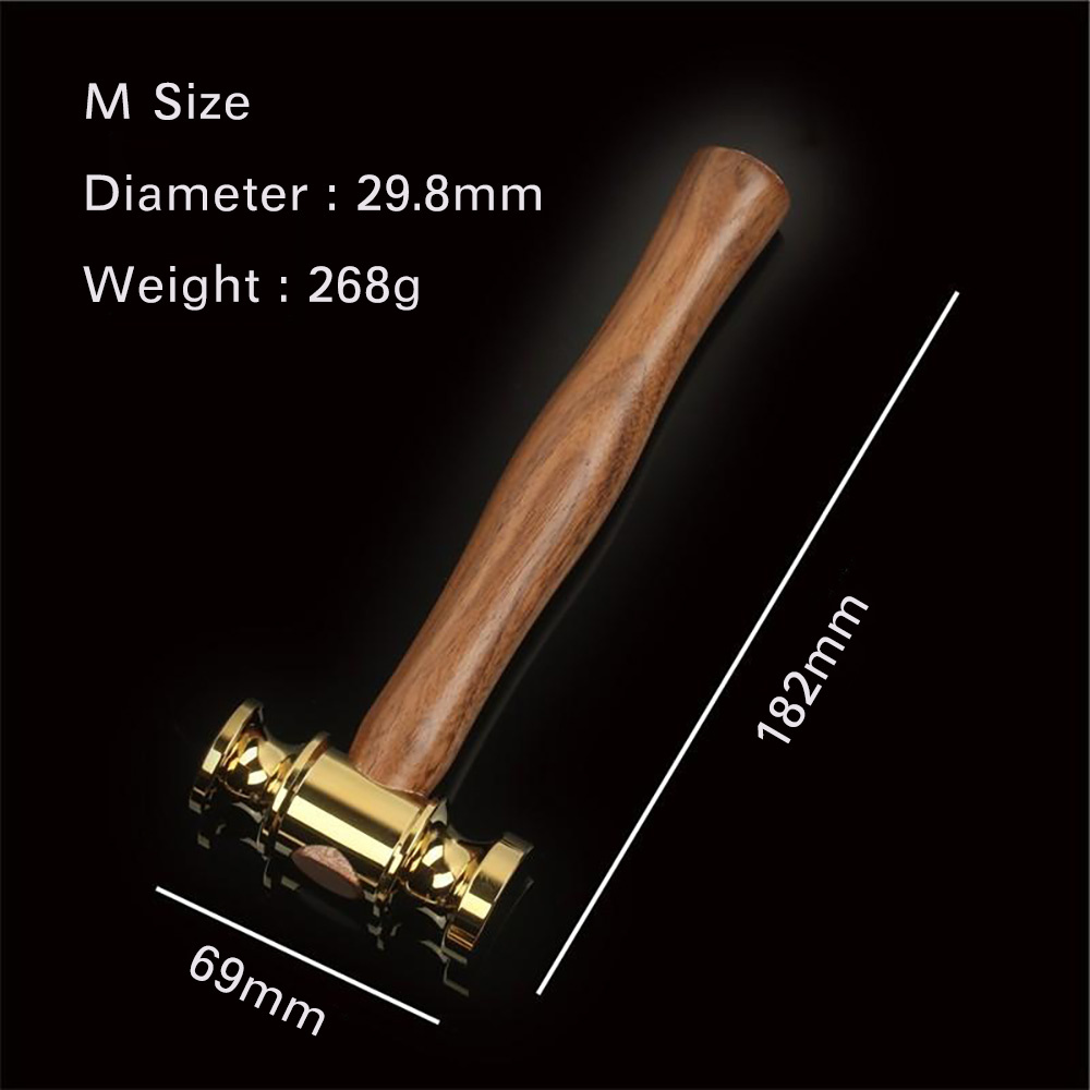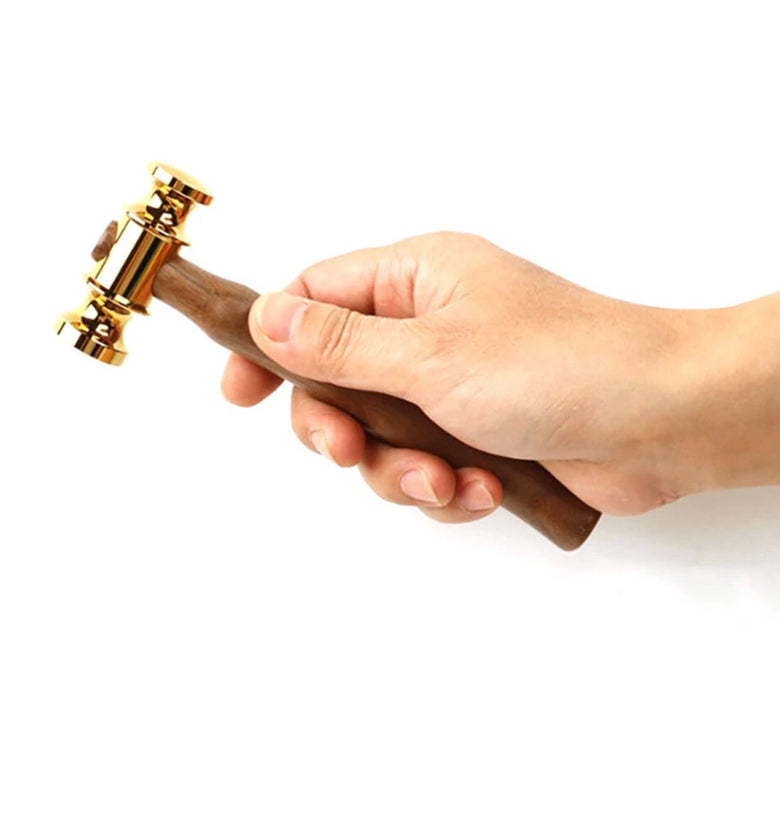 • Brass Hammers Solid Mirror Polished Commencement Starting Hammer Wooden Handle Leather Craft Workshop DIY Tool