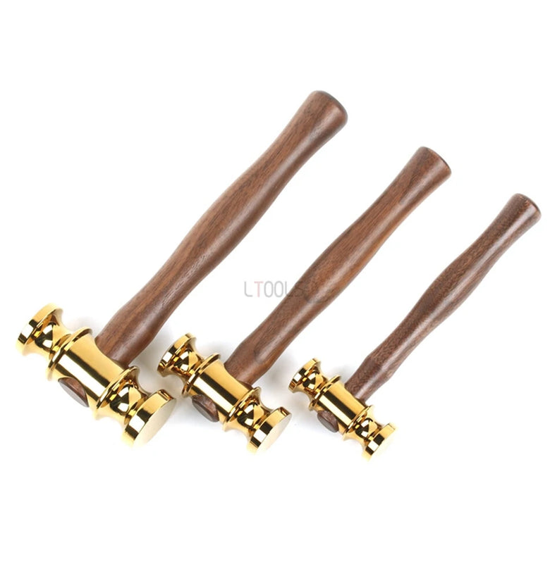 Brass Hammers Solid Mirror Polished Commencement Starting Hammer Wooden Handle Leather Craft Workshop DIY Tool