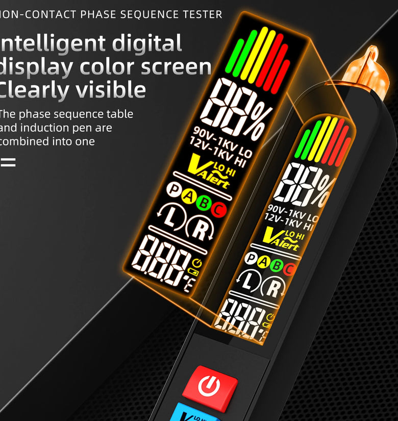 • BSIDE AVX1 Non-Contact Phase Sequene Tester LCD Display Voltage Detection Temperature Measurement Rechargeable Lithium Battery Lightweight Compact Electrical Testing Tool