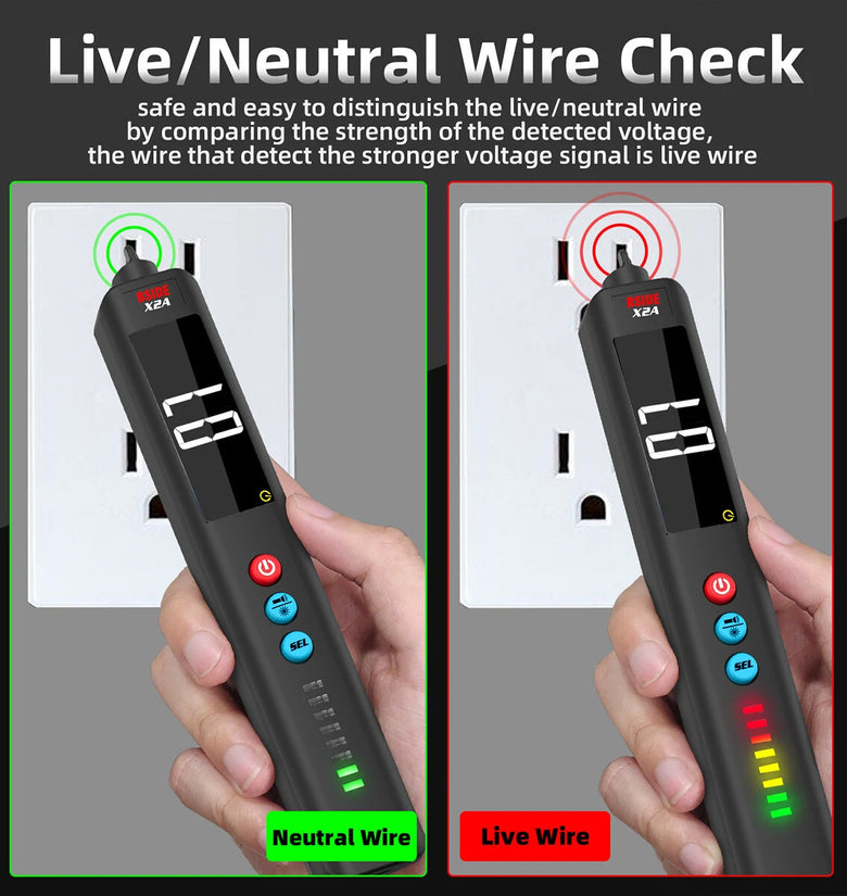 With insulation design, this tool can test live line and line safely as electrical test pen. The buzzer beeps slowly when it's a line and beeps fastly when it's a live line.