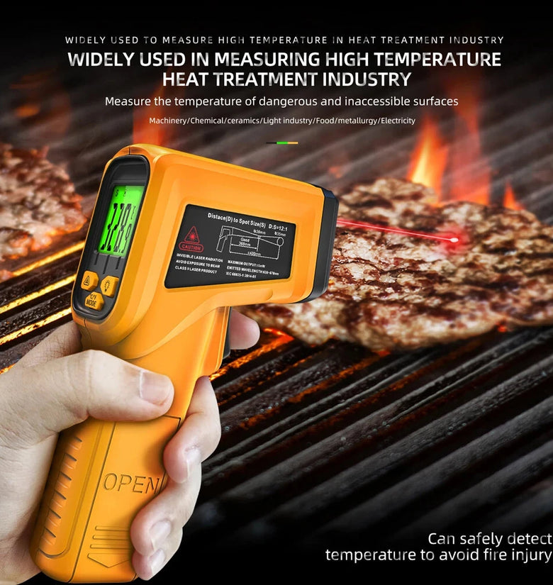 mso-bidi-font-family:'Times New Roman';font-size:10.5000pt;mso-font-kerning:1.0000pt;'>Wide Range of Applications: Designed for industrial use, this thermometer is not intended for measuring the body temperature of animals or humans. However, it is widely applicable in multiple industries like machinery manufacturing, ceramic baking, light industry, gold processing, automotive, food cooking, mold temperature measurement, and household water and oil temperature measurement. The 12:1 distance-to-spot ratio allows for accurate measurements from a distance, catering to a broad spectrum of surface temperature monitoring needs.mso-bidi-font-family:'Times New Roman';font-size:10.5000pt;mso-font-kerning:1.0000pt;'>