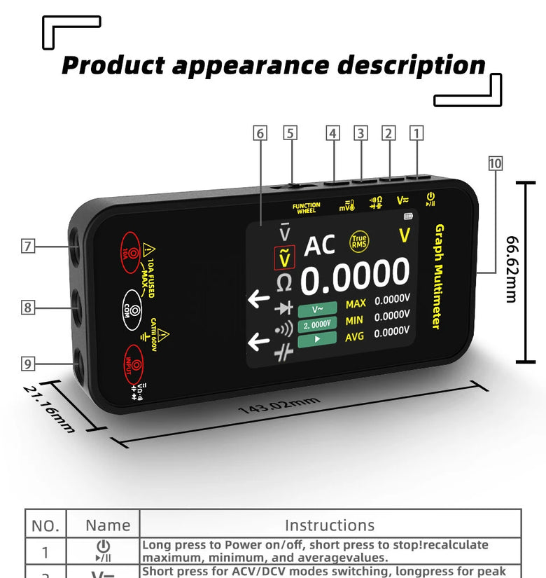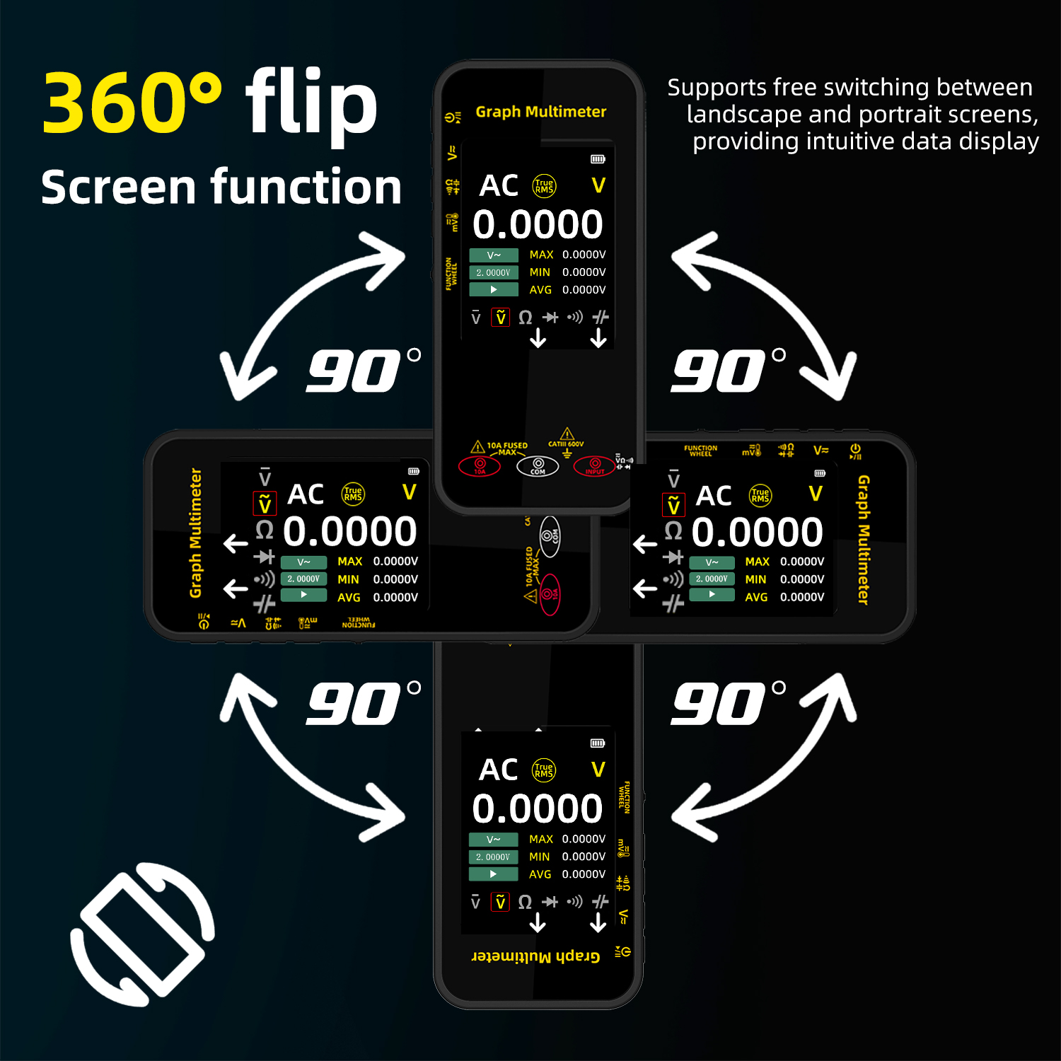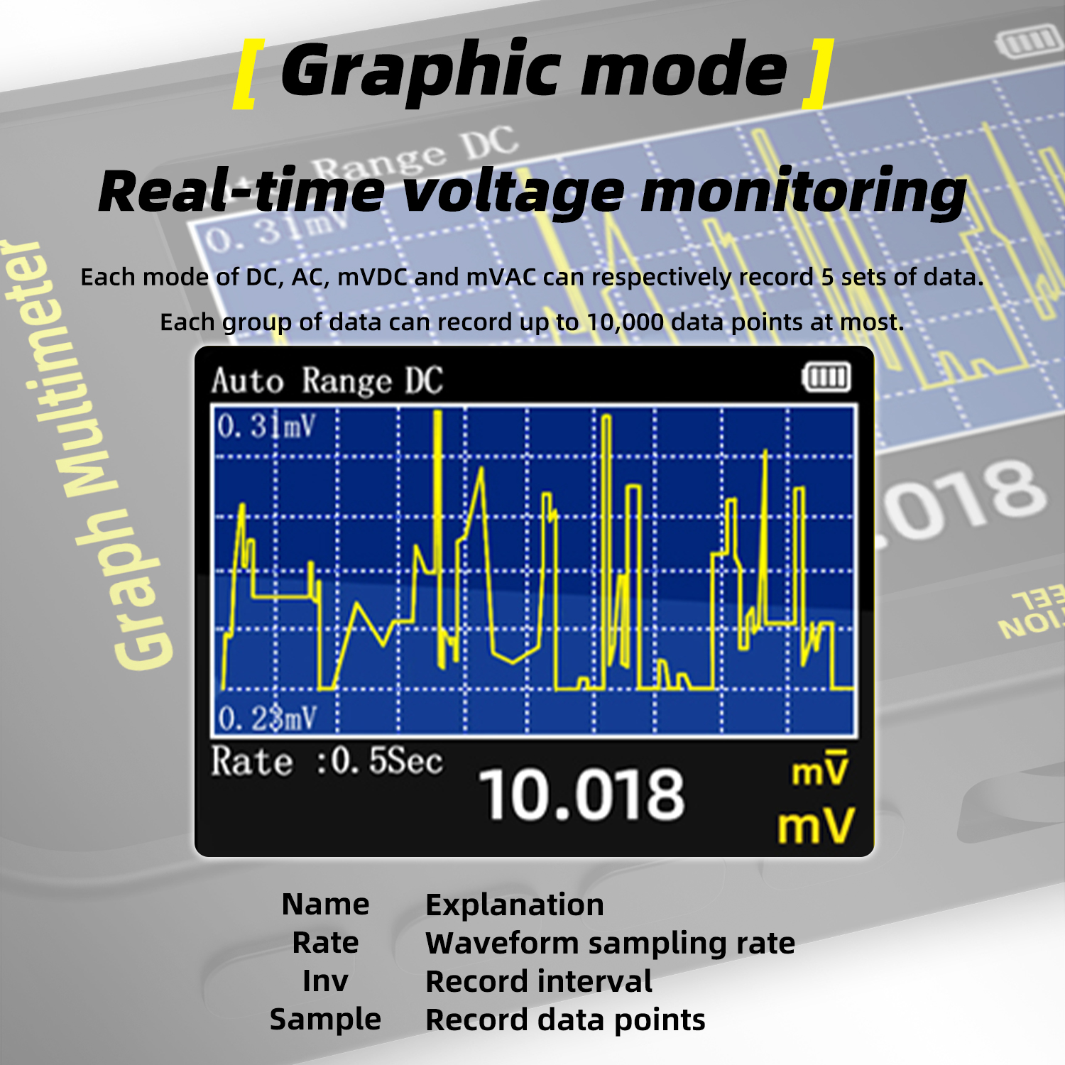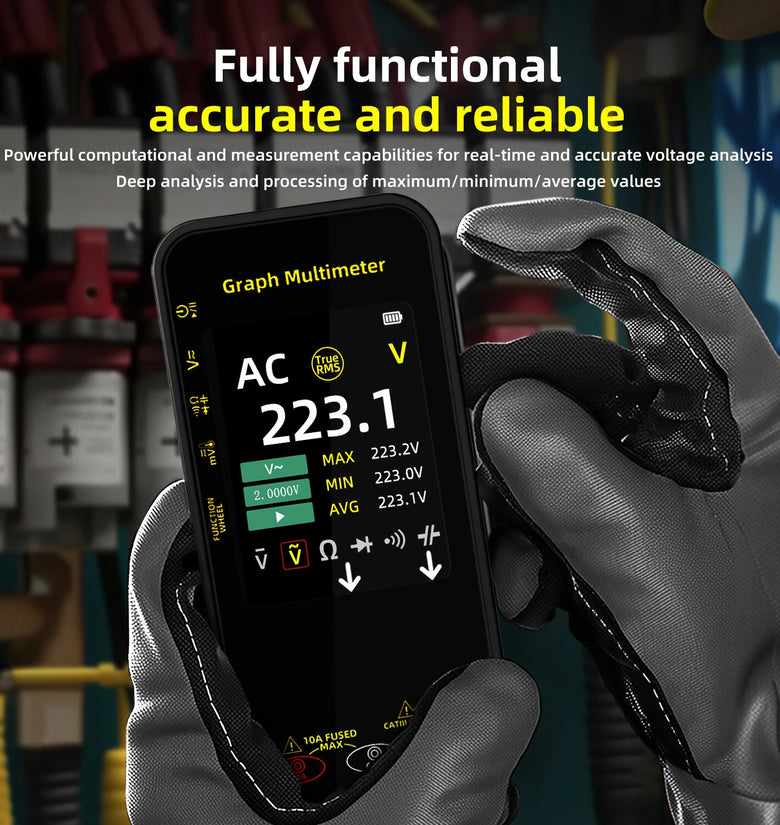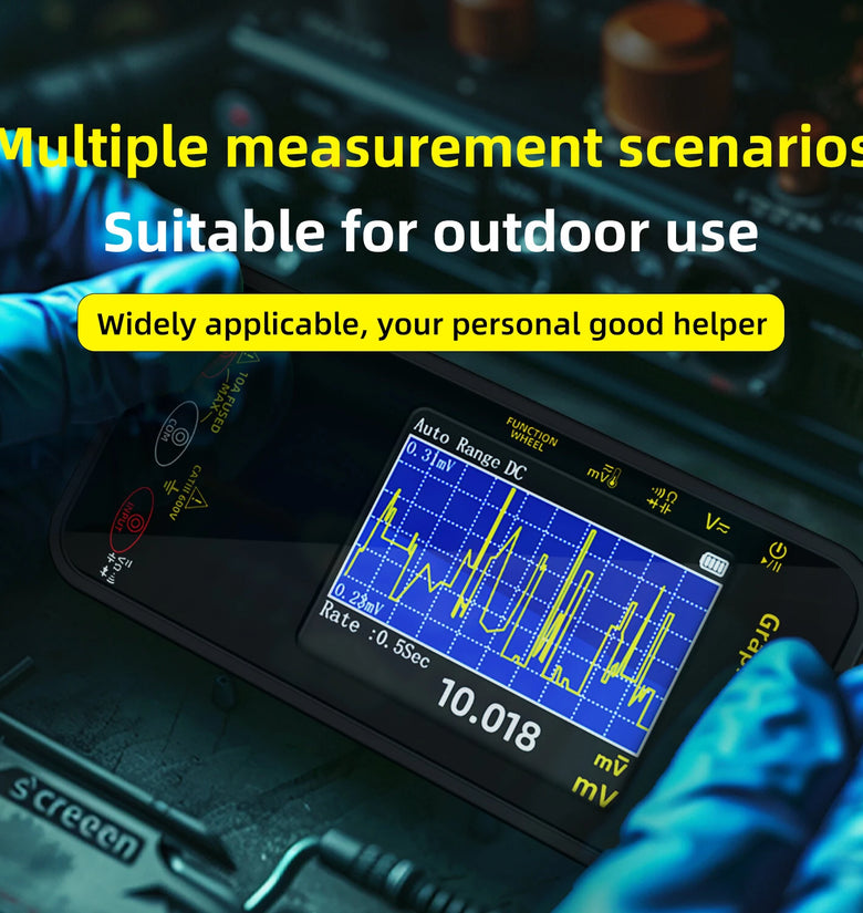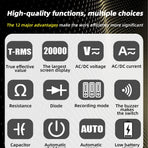 Supports DC/AC voltage measurements up to 1000V, currents up to 10.000A, and resistance up to 200.000MΩ, catering to professionals across fields from electronics to HVAC on precise tasks.