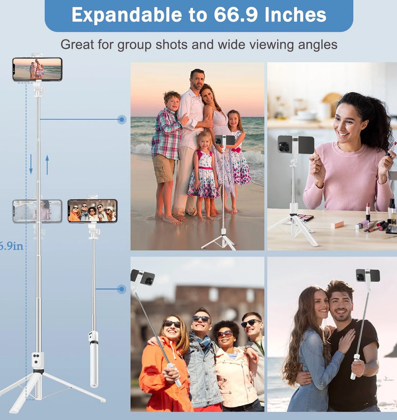 3. Extendable Tripod (12'–66.9'): Stainless-steel construction supports overhead, portrait, and landscape shooting modes.