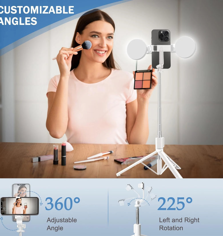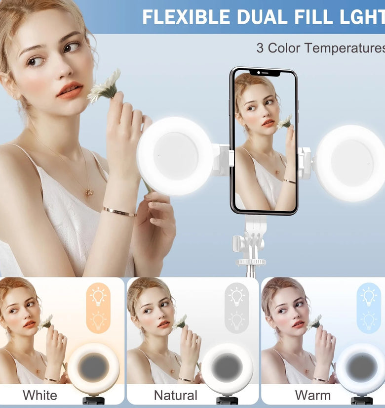 2. Dual 360° Fill Lights: Adjustable warm/cool/natural lighting with 9 brightness levels for professional-grade shots.